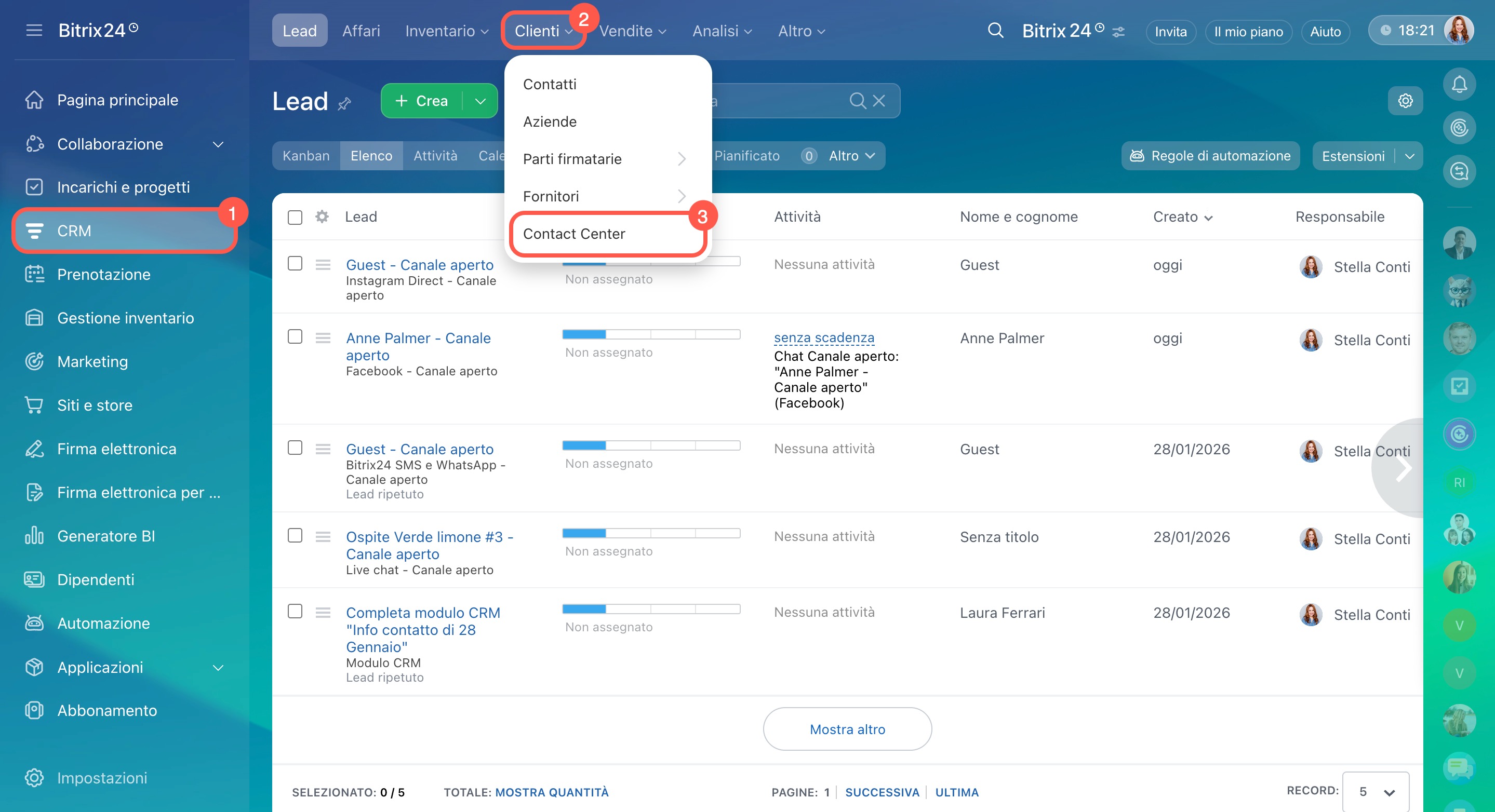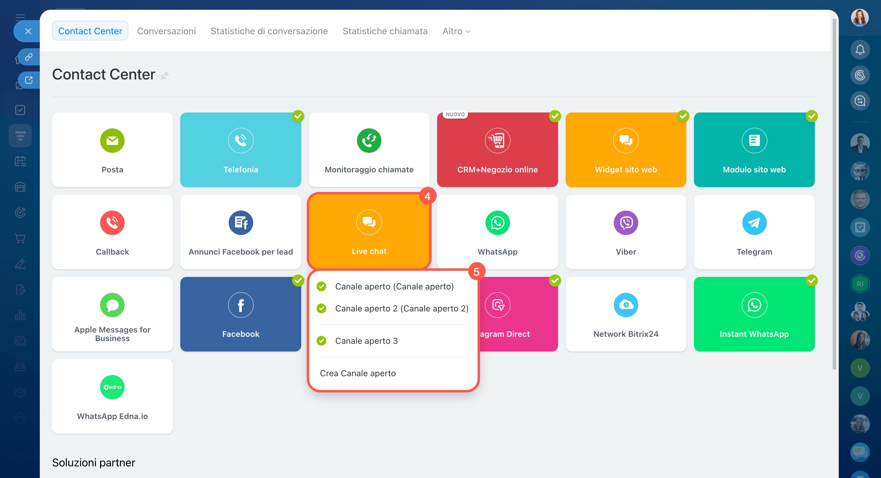 In Bitrix24 ogni operatore può avere al massimo 1.000 chat aperte. Questo limite garantisce la stabilità dei canali di comunicazione anche con un alto volume di messaggi, distribuendo in modo equilibrato il carico tra i dipendenti.