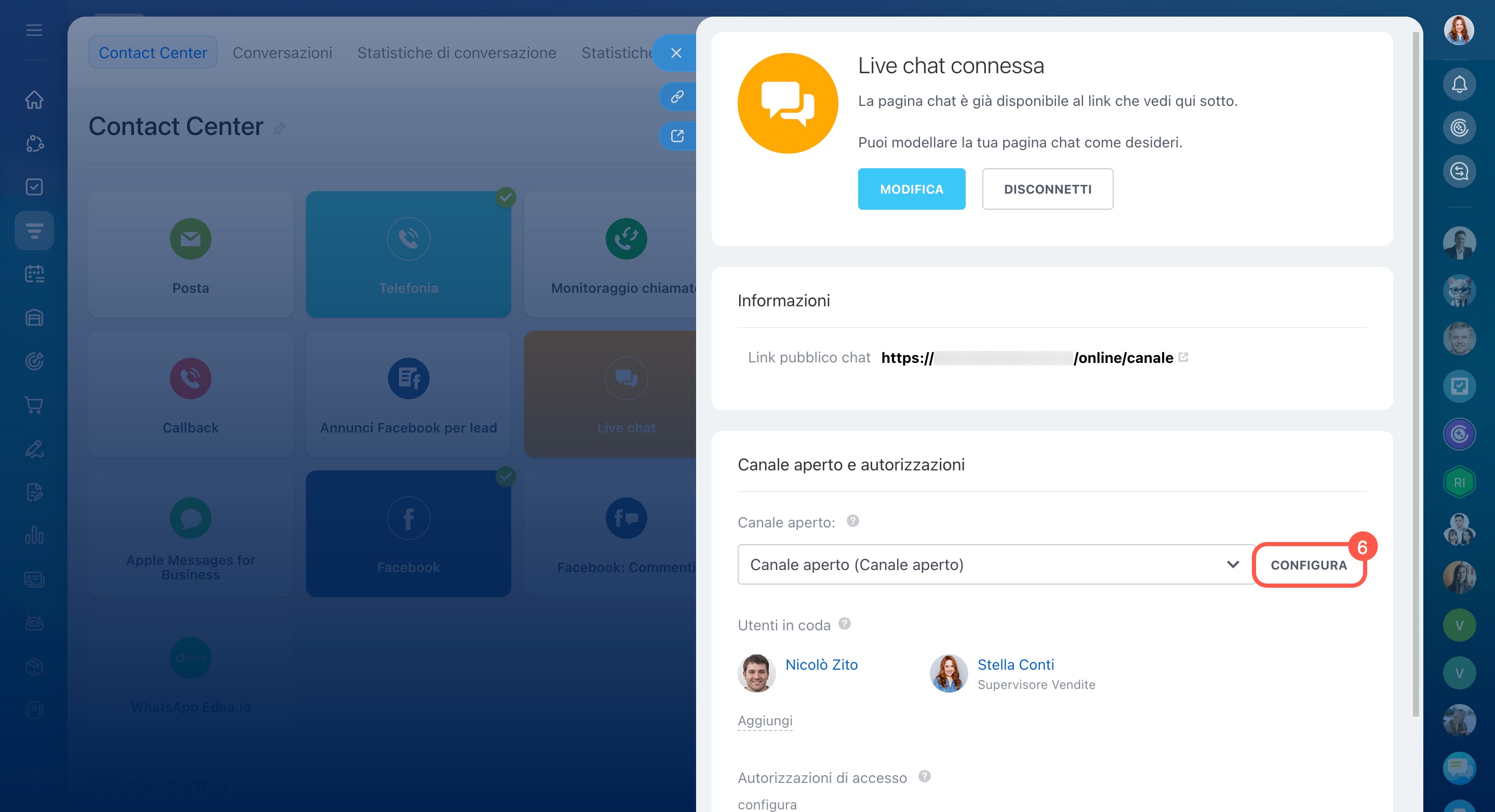 - Nelle impostazioni del canale, fai clic su Configura nella sezione Canale aperto e autorizzazioni.