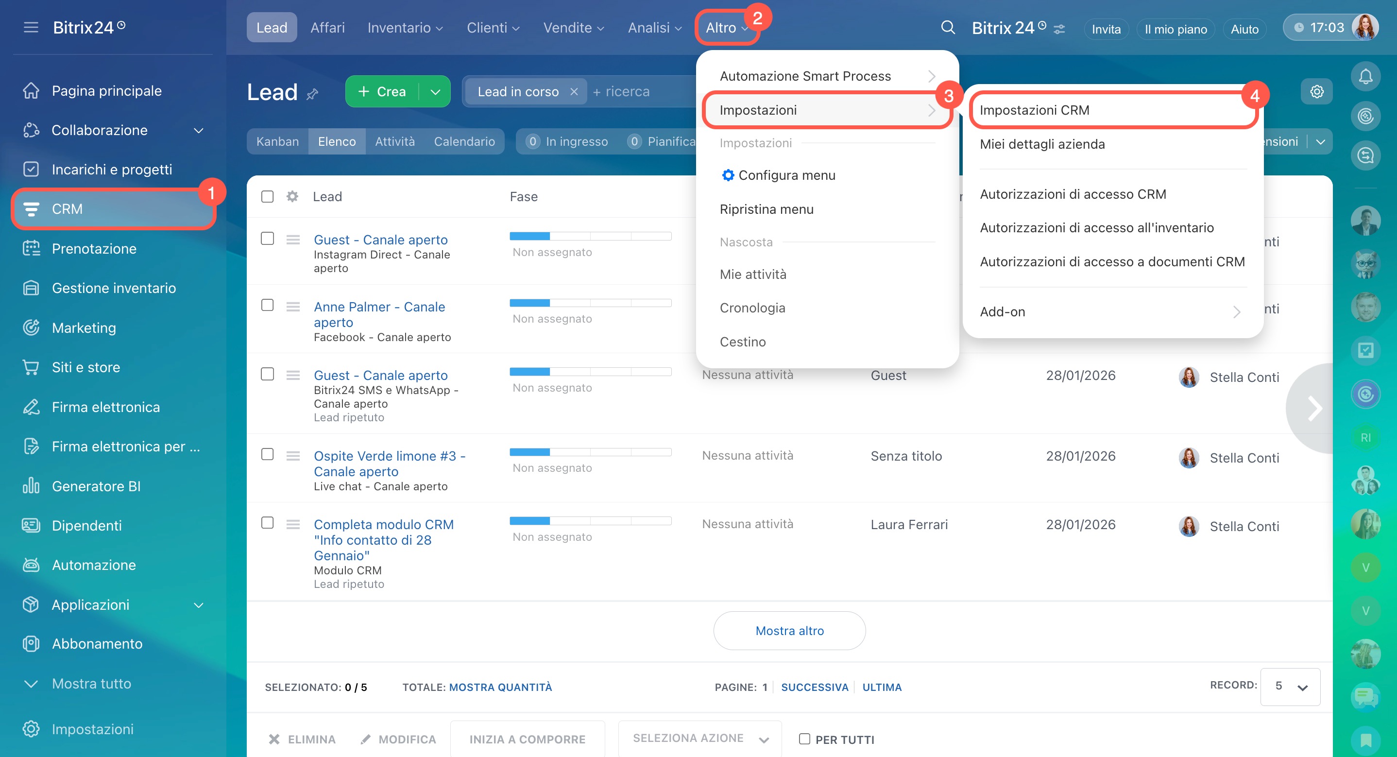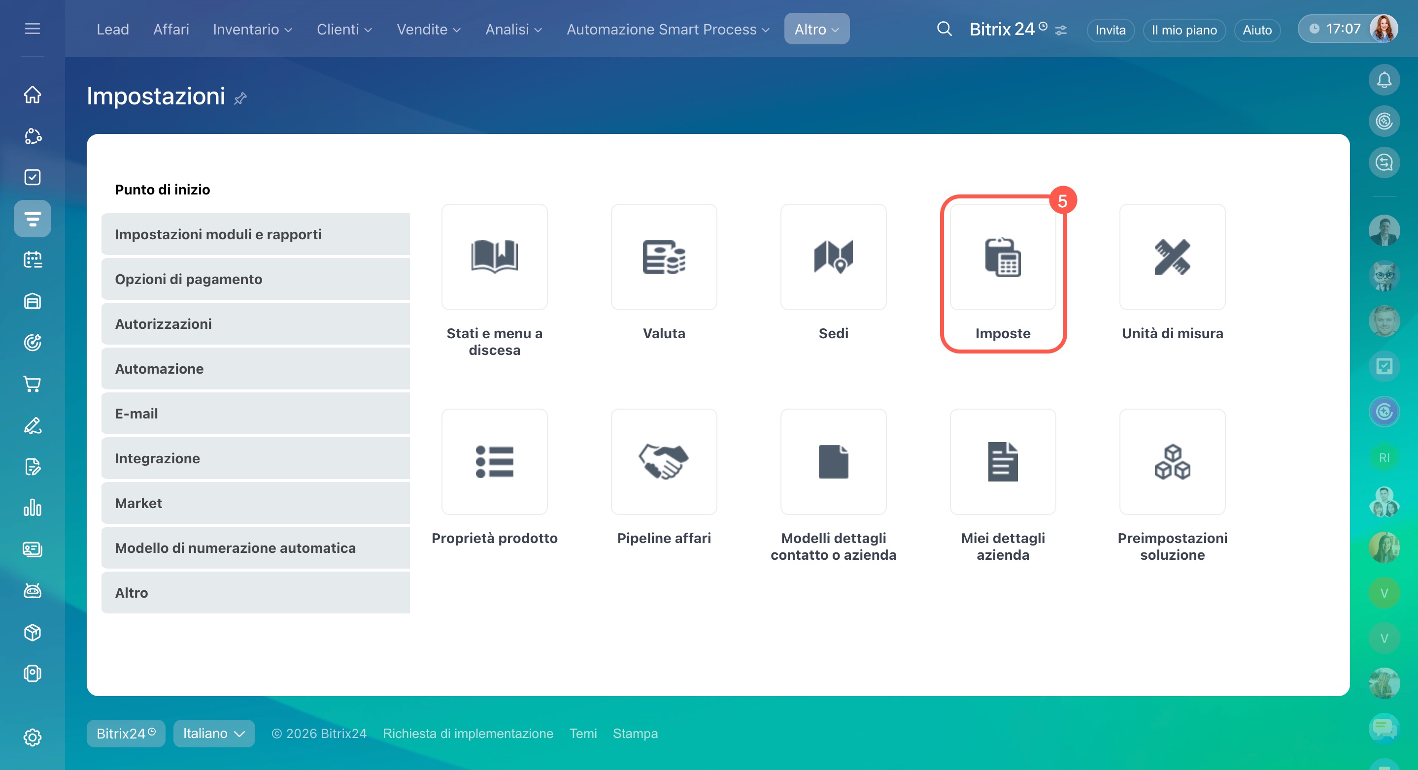 - Per scegliere il tipo di imposta, vai su CRM > Altro > Impostazioni > Impostazioni CRM > Imposte > Configura.