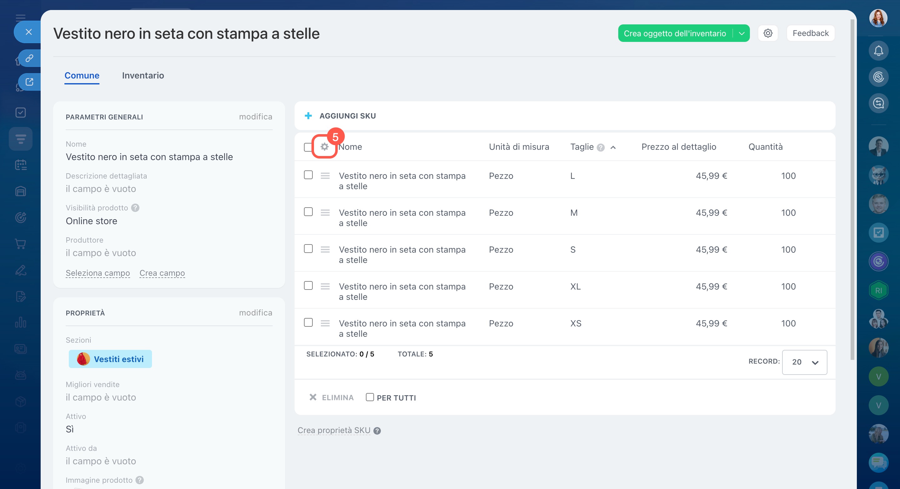 - Vai su CRM > Inventario > Catalogo prodotti e apri la scheda del prodotto desiderato.