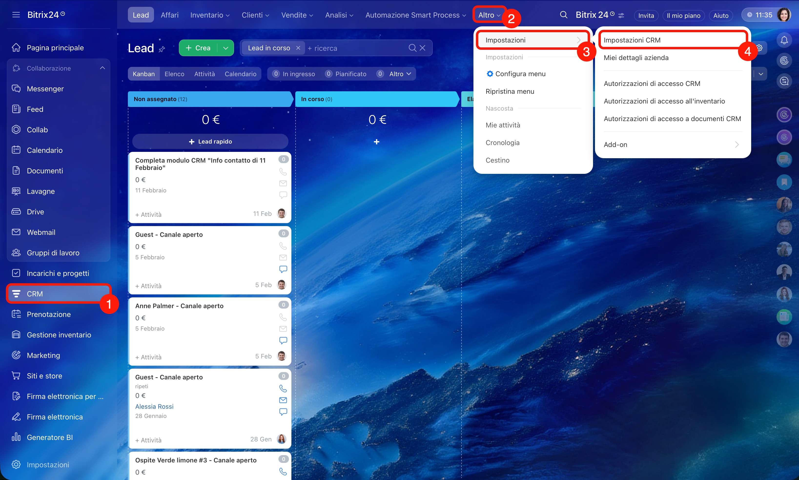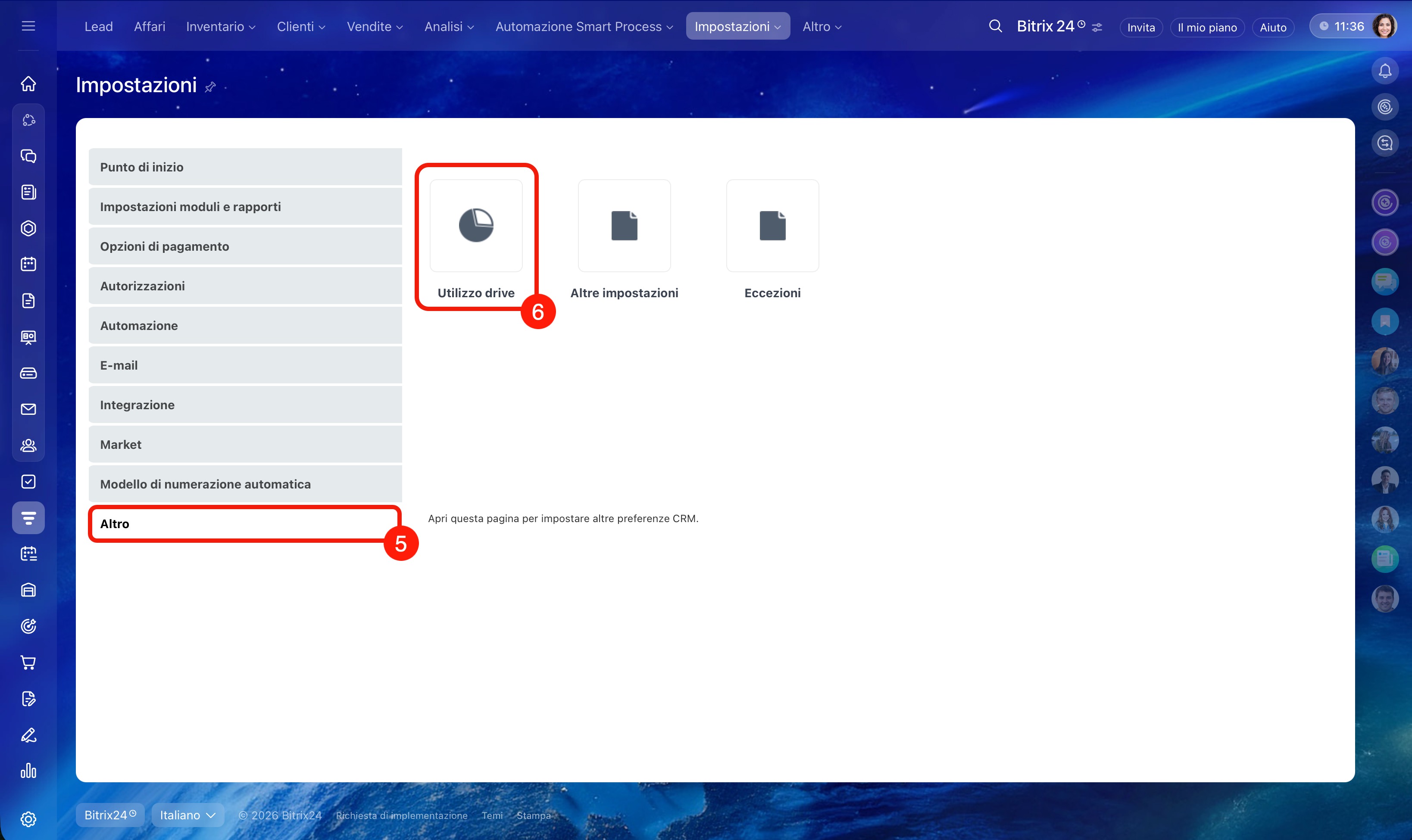 1–4. Vai su CRM > Altro > Impostazioni > Impostazioni CRM.