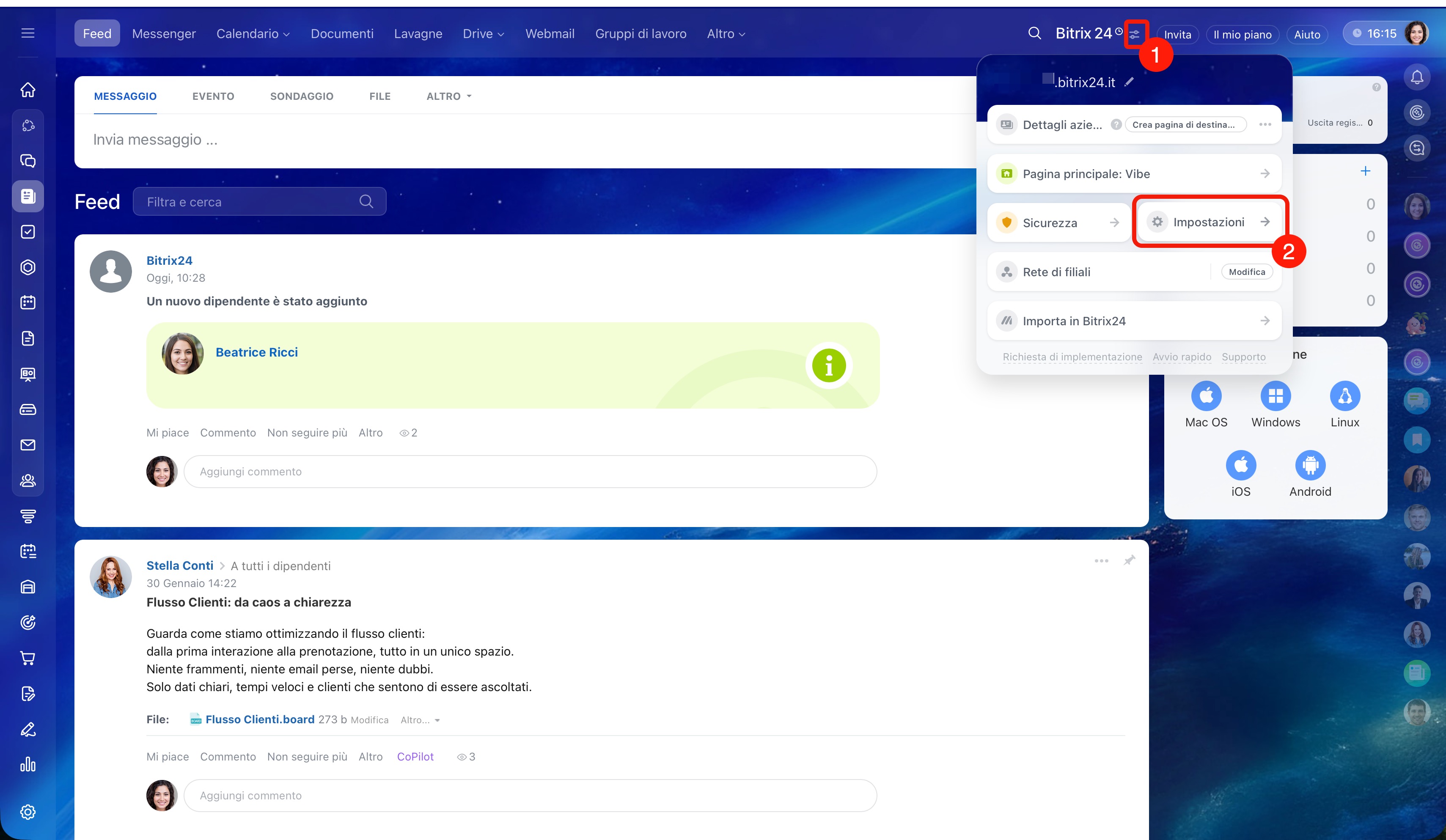 1–2. Accedi a Impostazioni (⚙️) Bitrix24.
