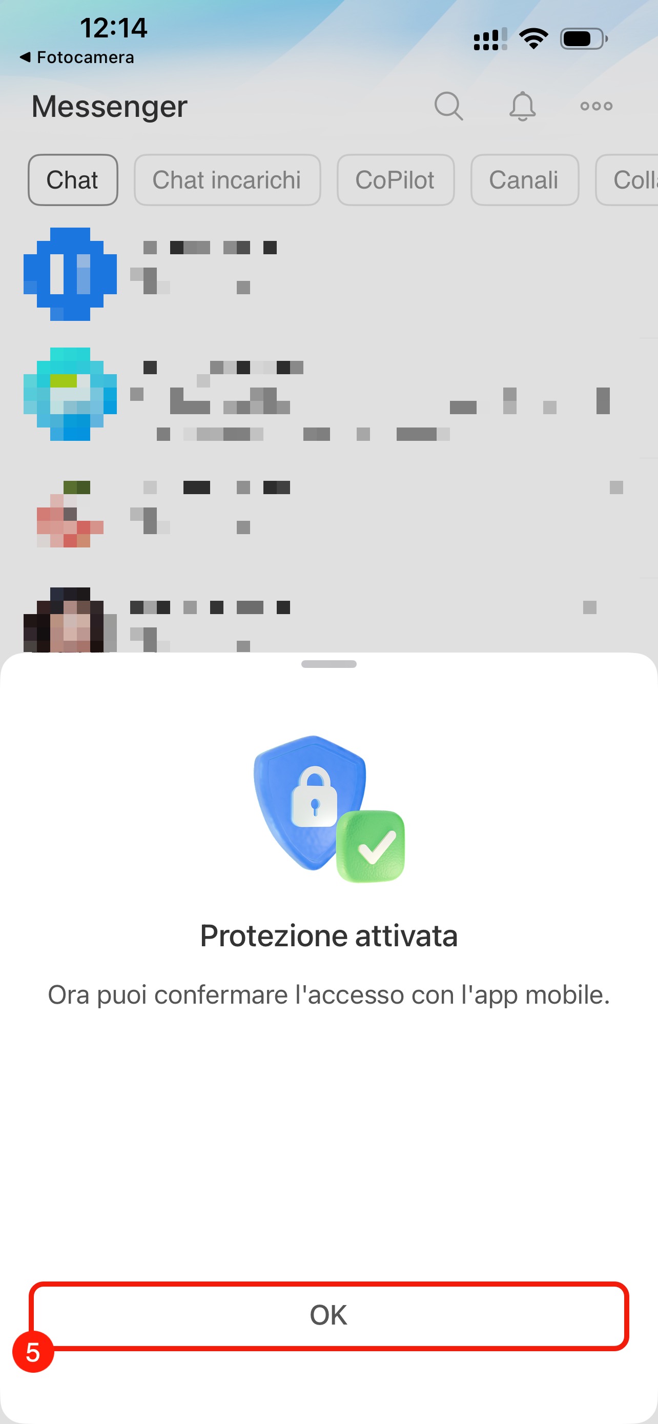 5. Nell'app mobile clicca su OK — protezione attivata.