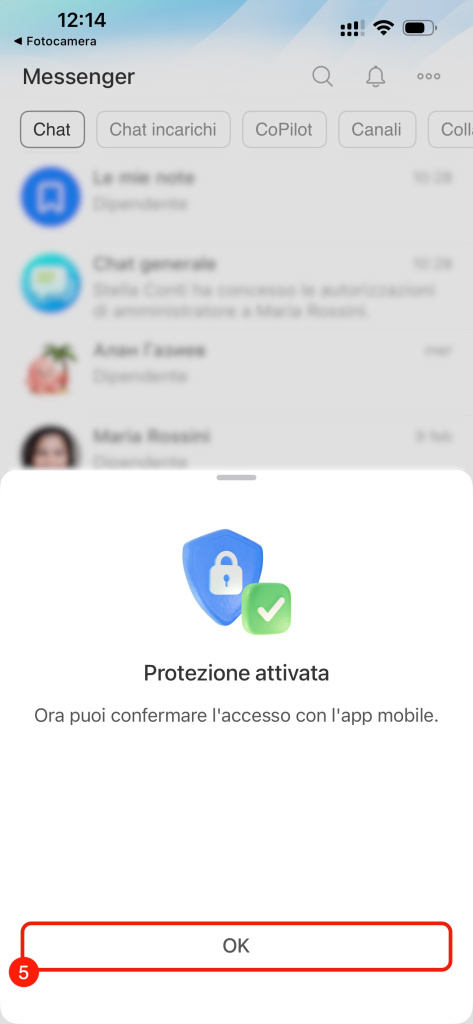 5. Nell'app mobile clicca su OK — protezione attivata.