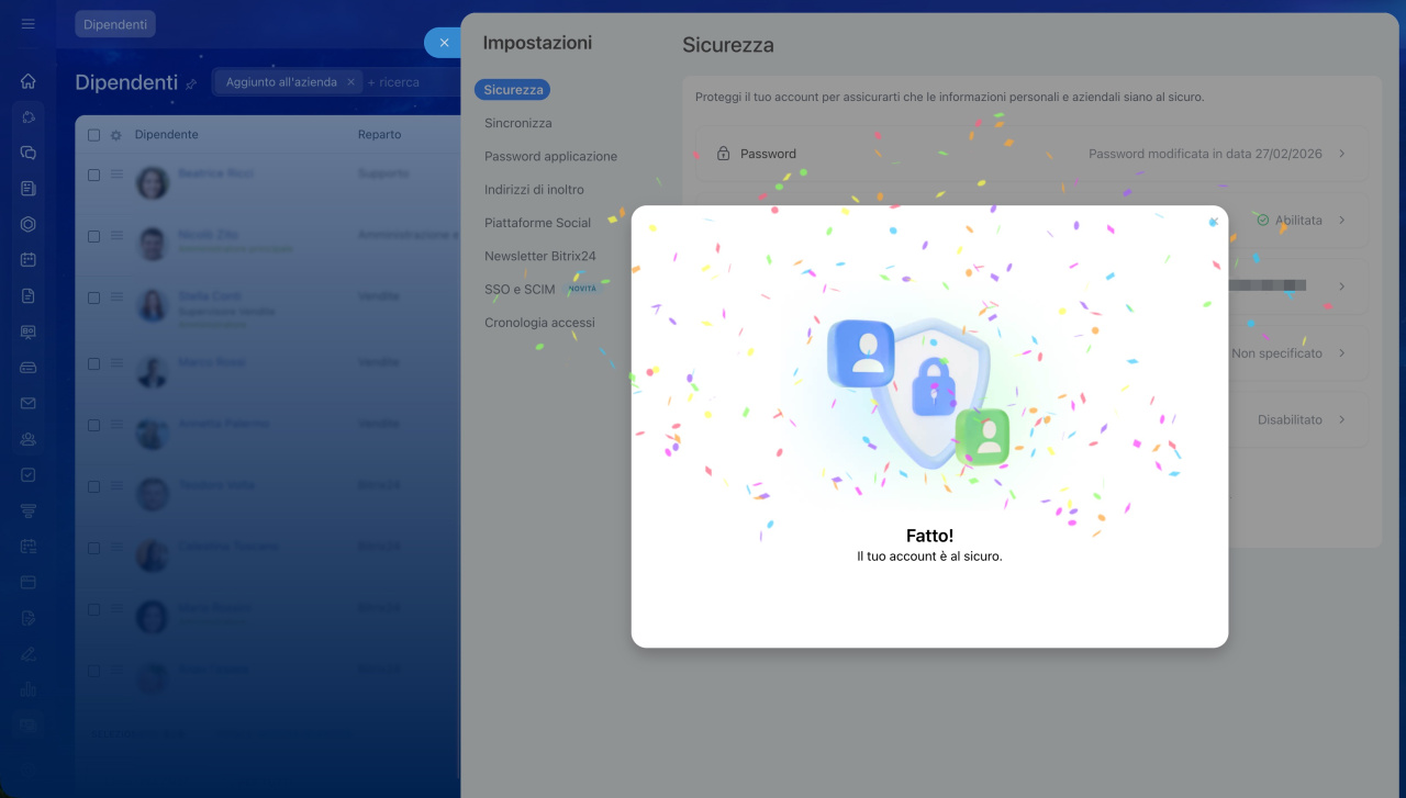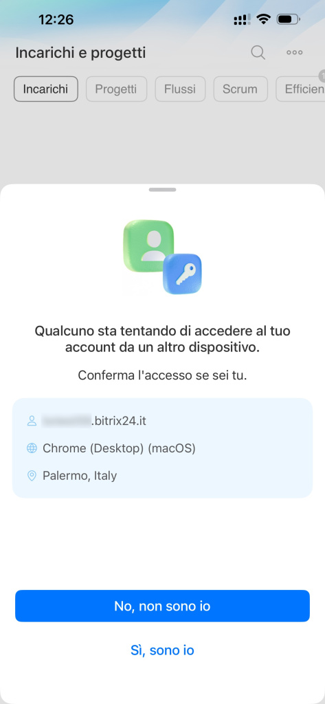 Adesso i tuoi dati sono protetti. Per accedere a Bitrix24, inserisci il login, la password e conferma l'azione nell'app mobile.