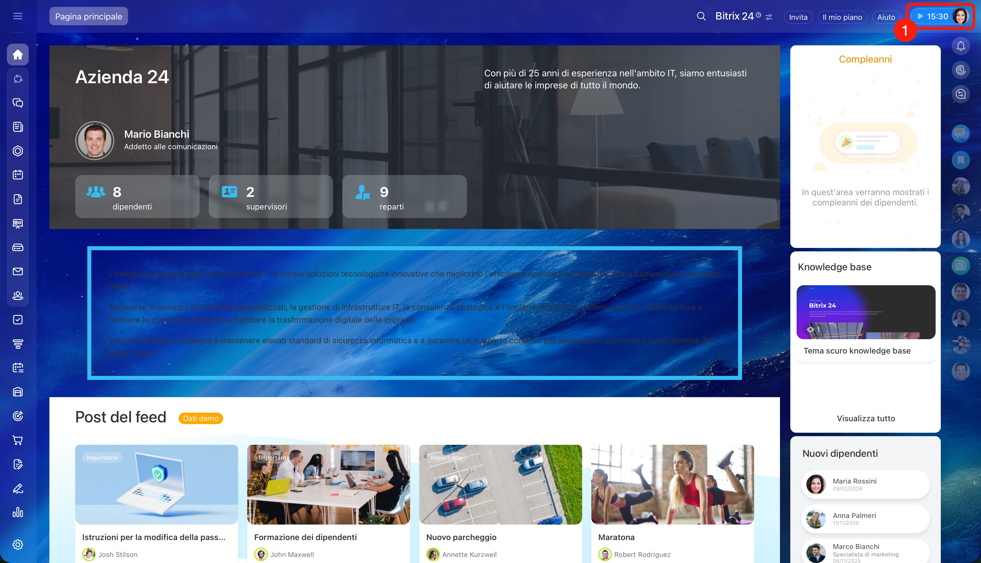 - se l'opzione Tempo e rapporti è attivata nelle impostazioni di Bitrix24,