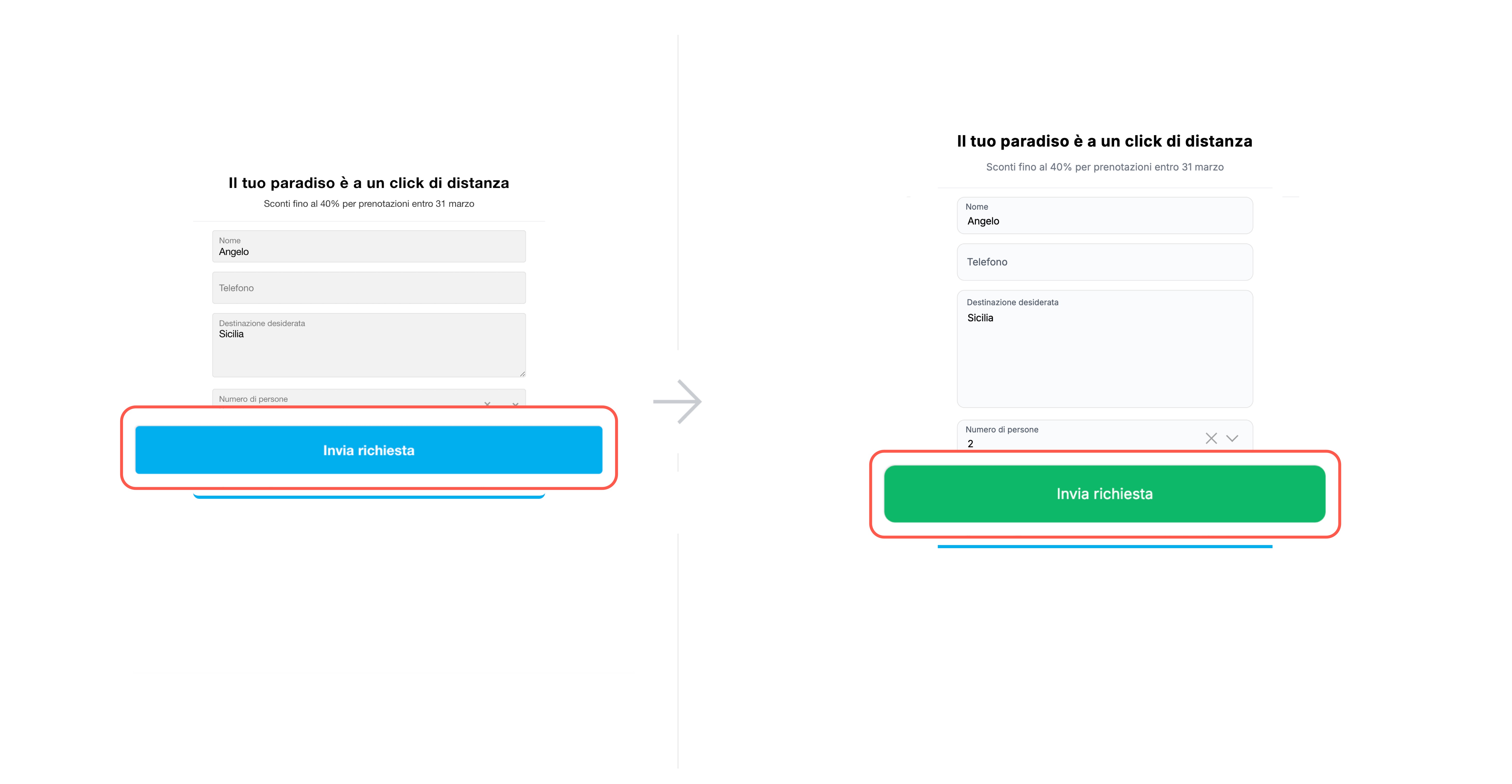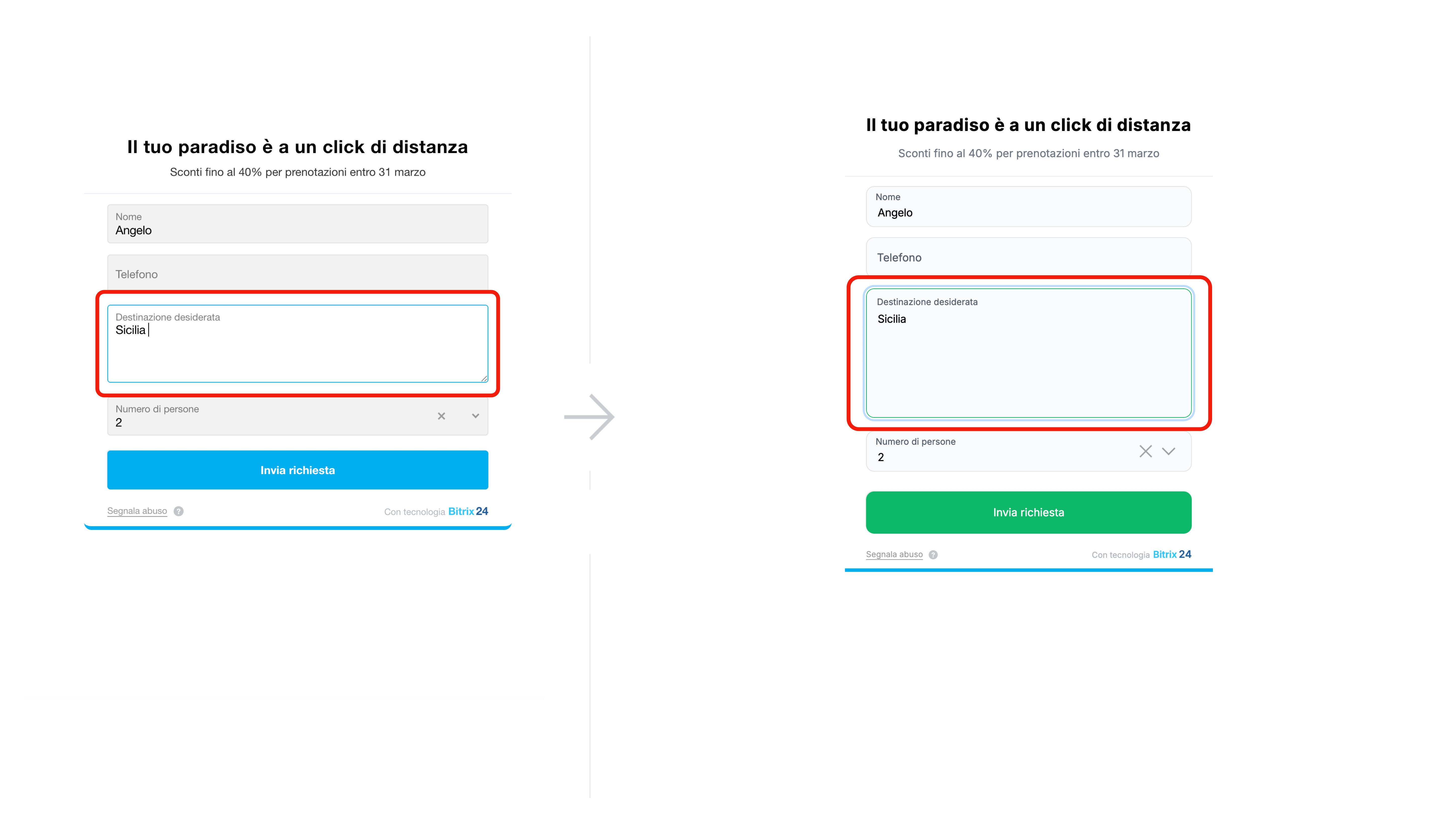 Elementi attivi. Modifica colore e stile di campi, caselle di controllo e pulsanti al passaggio del mouse e al focus da tastiera, in modo che corrispondano allo stile del sito e al design generale del modulo.