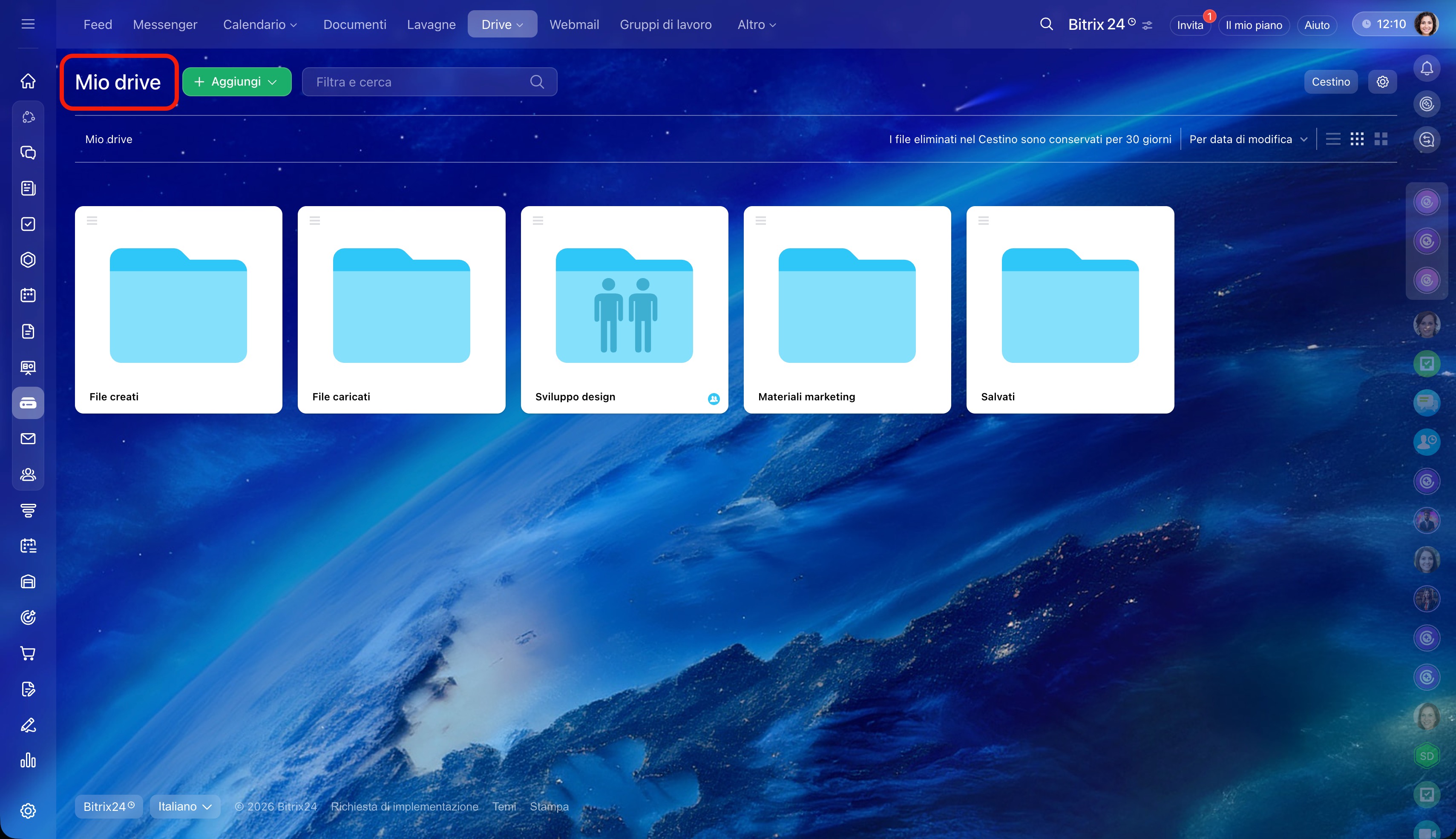 Cestino nel Drive in Bitrix24