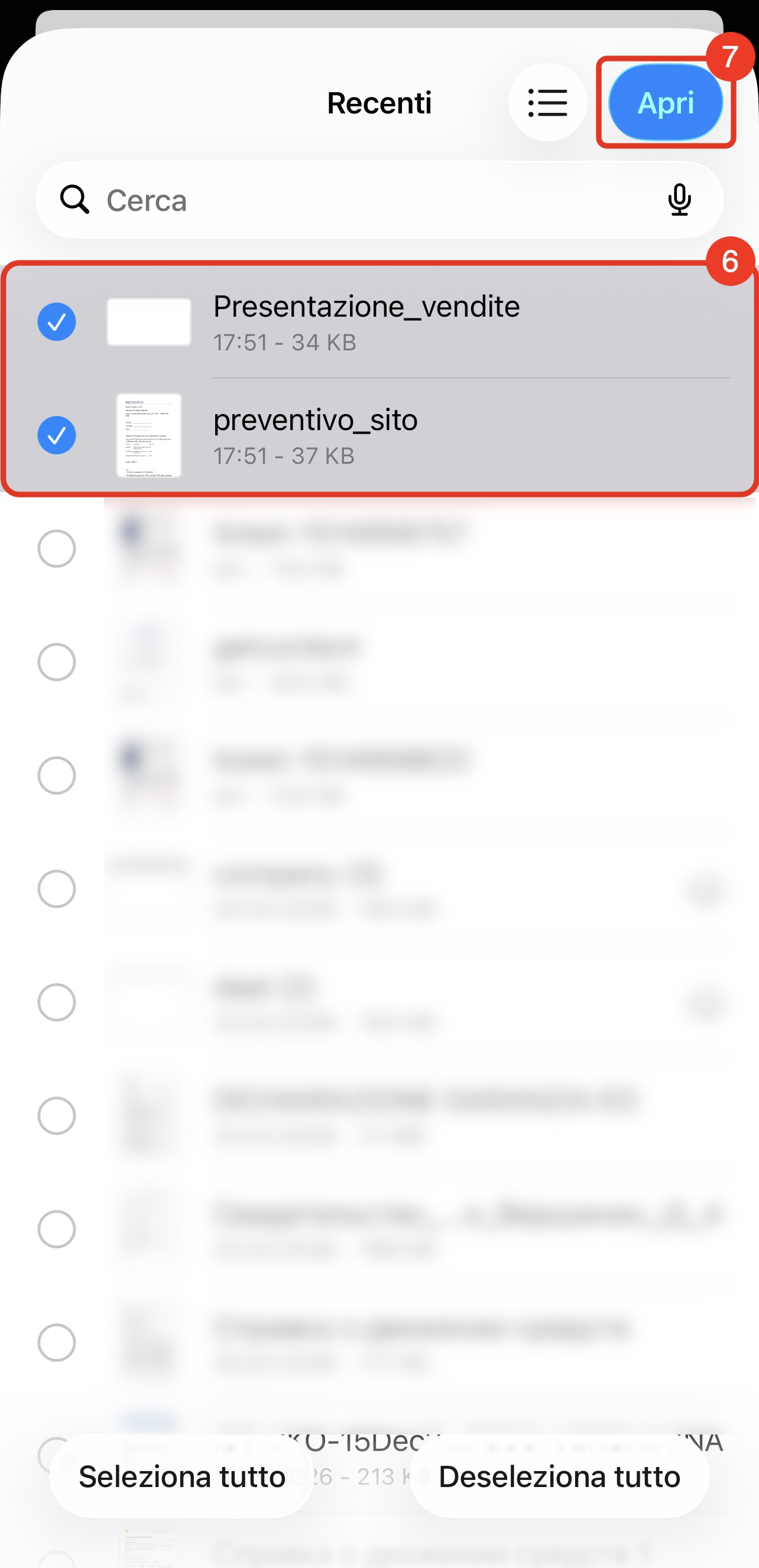 Tieni premuto il file per aprire il menu. Seleziona Condividi e indica dove e a chi vuoi inviare il file.