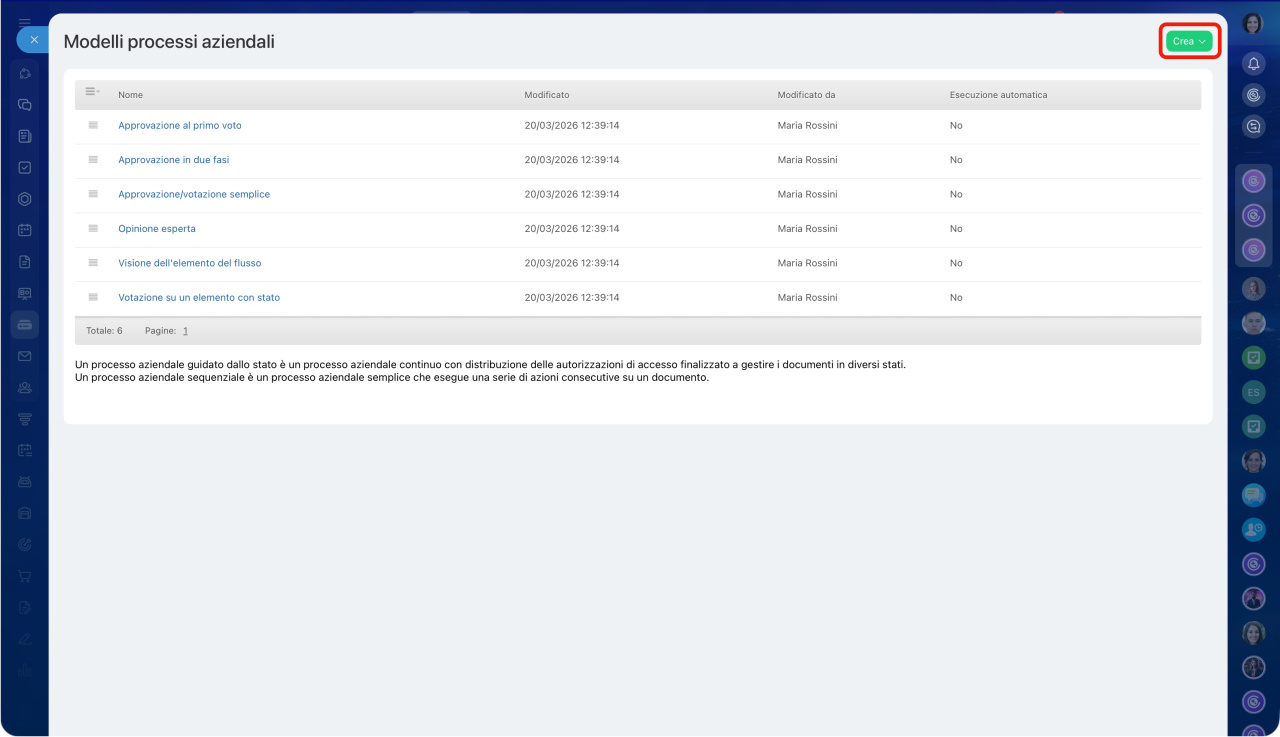 Configurazione dei processi aziendali permette di attivare oppure disattivare la possibilità di configurare e avviare processi aziendali per lavorare con i file.