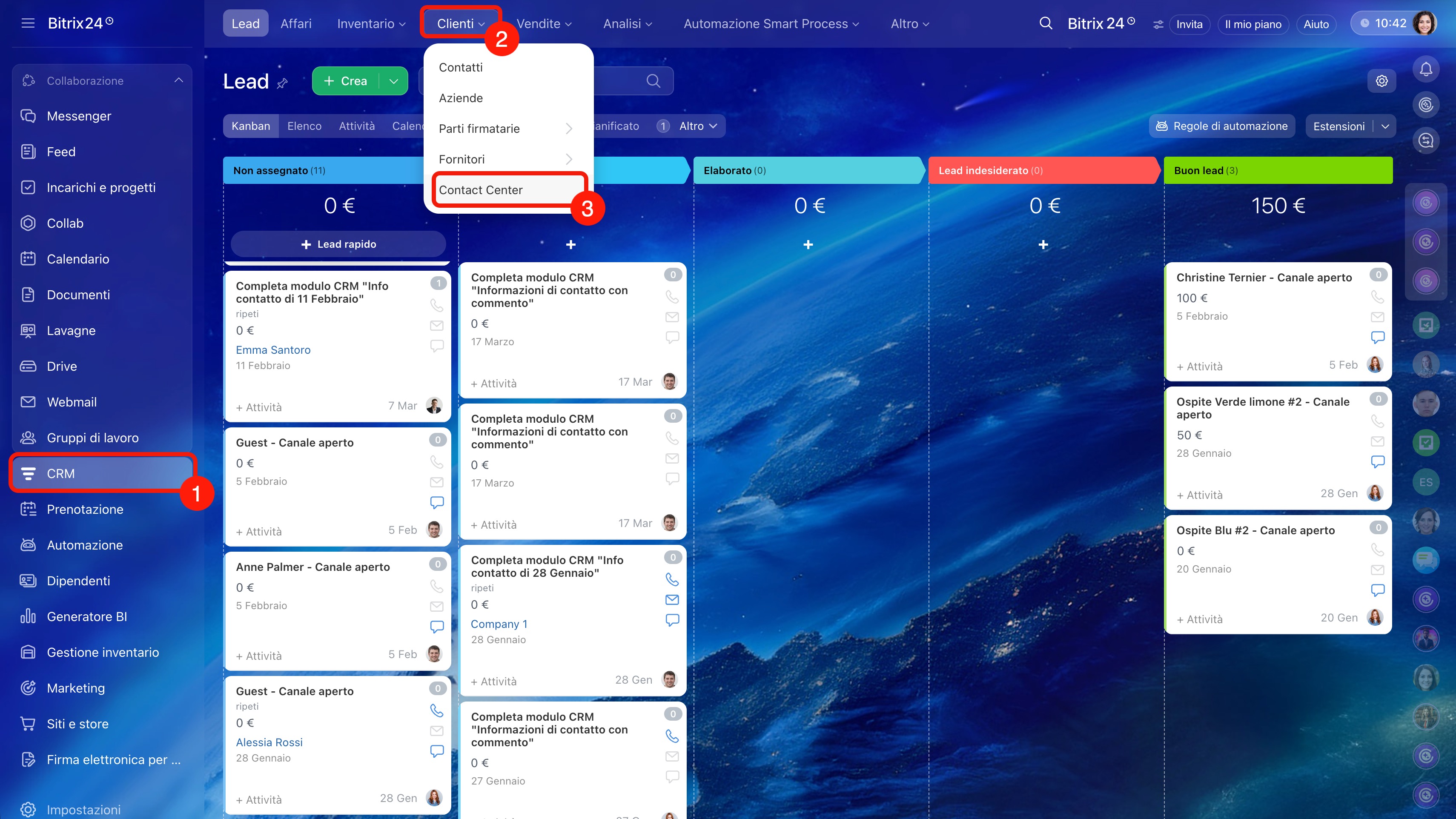 Vai alla sezione CRM > Clienti > Contact center.