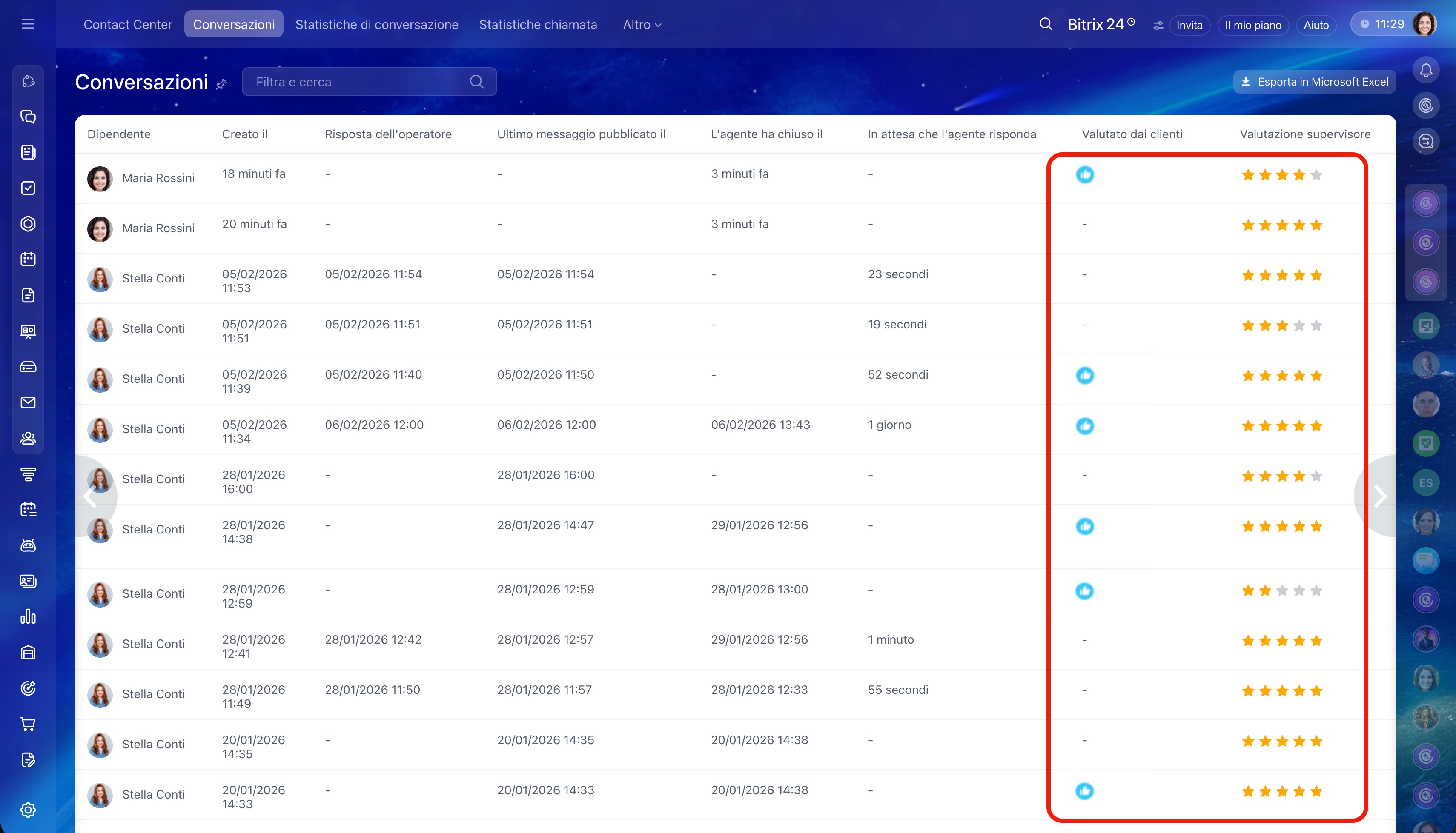 Valutazione della qualità del servizio mostra quanto i clienti sono soddisfatti della comunicazione e come i responsabili valutano il lavoro degli operatori.