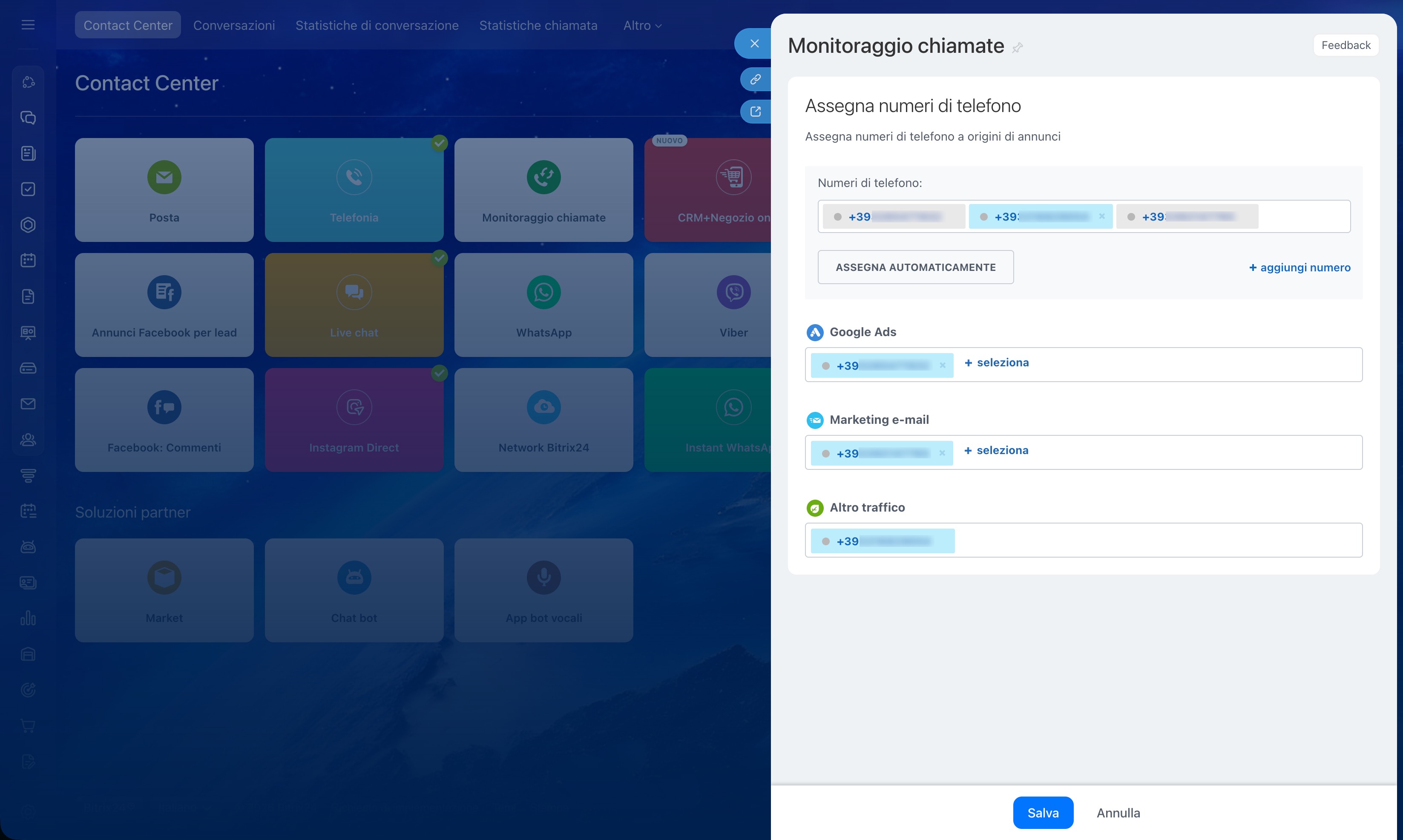Nel Contact center puoi configurare diversi canali di comunicazione per permettere ai clienti di contattare la tua azienda nel modo più comodo.