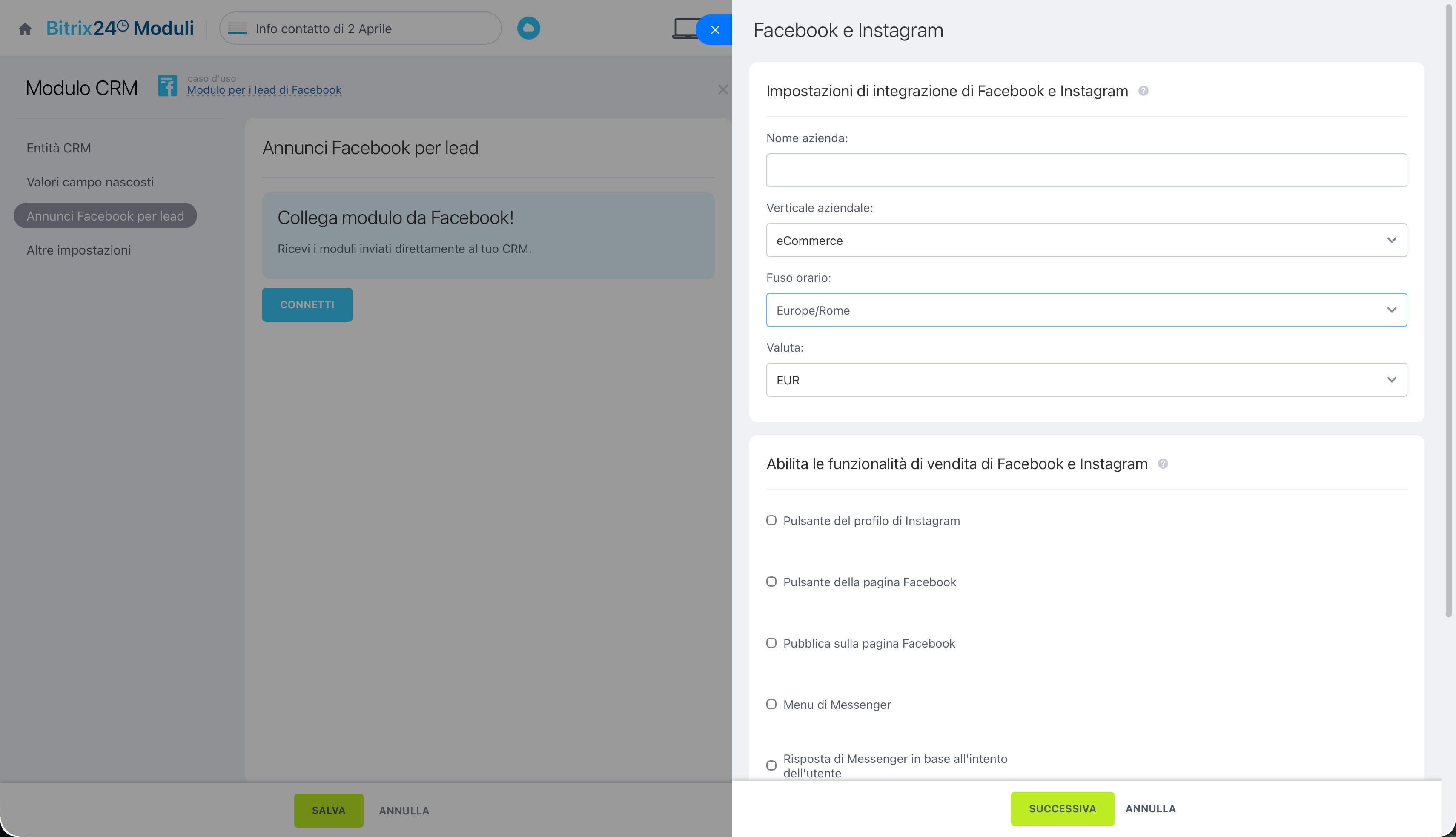 Integrazione con Facebook Lead Ads