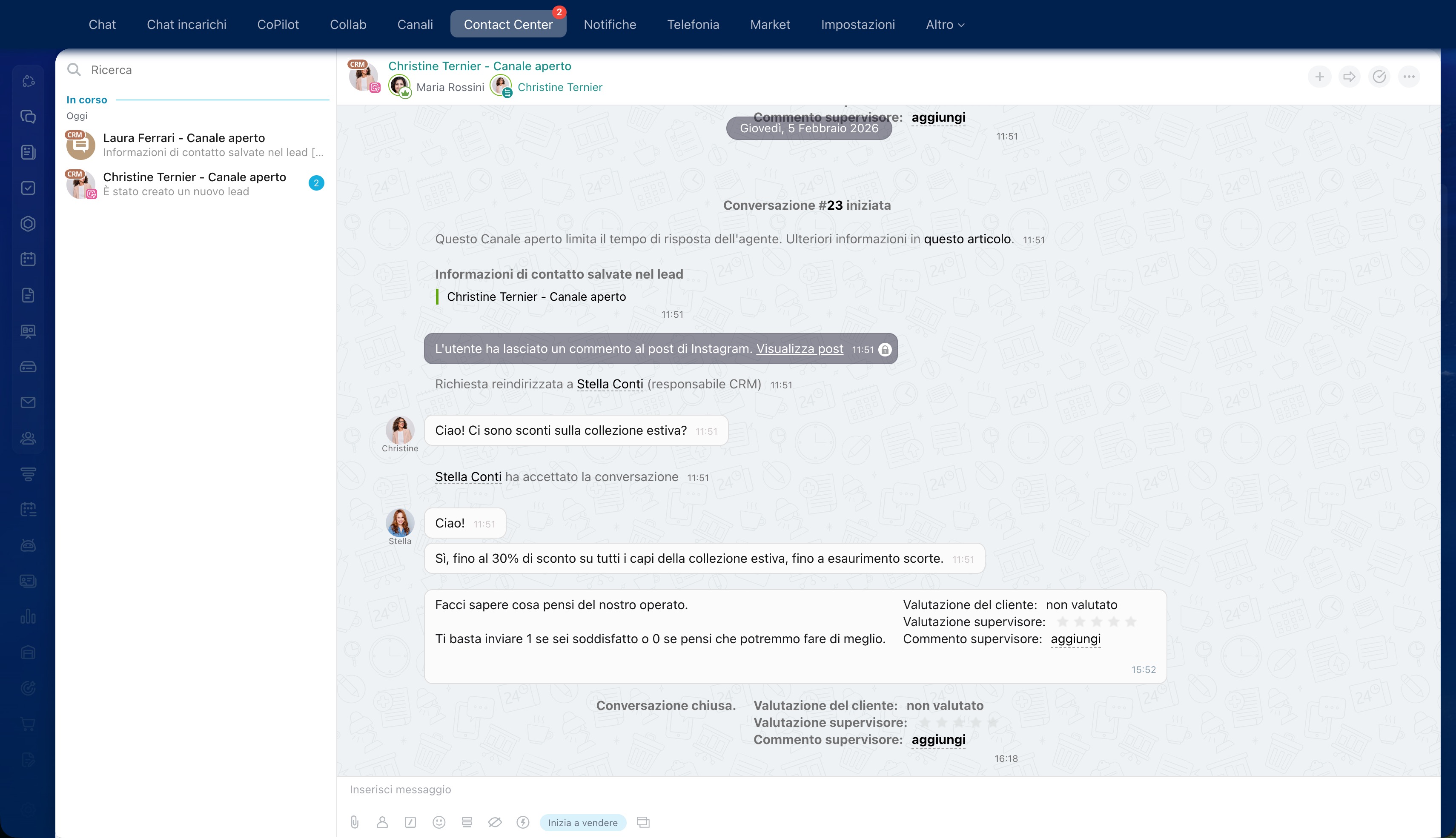 Dopo aver collegato i canali, è importante monitorare come i dipendenti gestiscono le richieste. Il Contact center offre strumenti per analizzare le richieste e valutare il lavoro degli operatori.