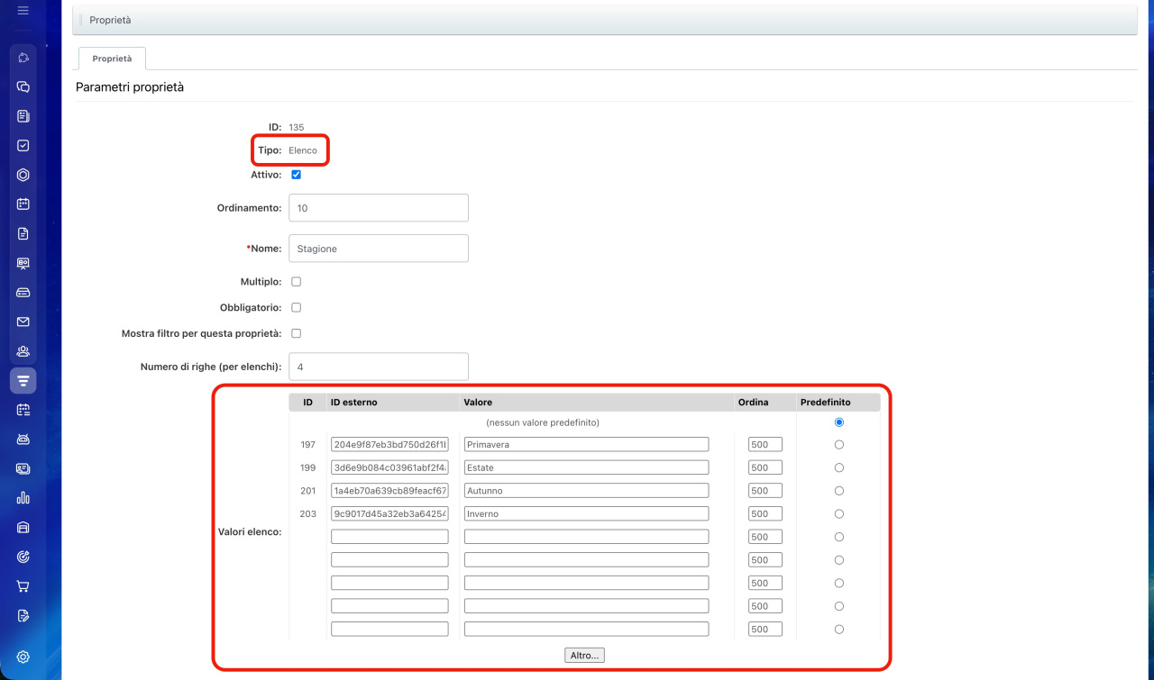 - Ordinamento: determina la posizione del valore nell’elenco. Più basso è il numero, più in alto sarà visualizzato.
