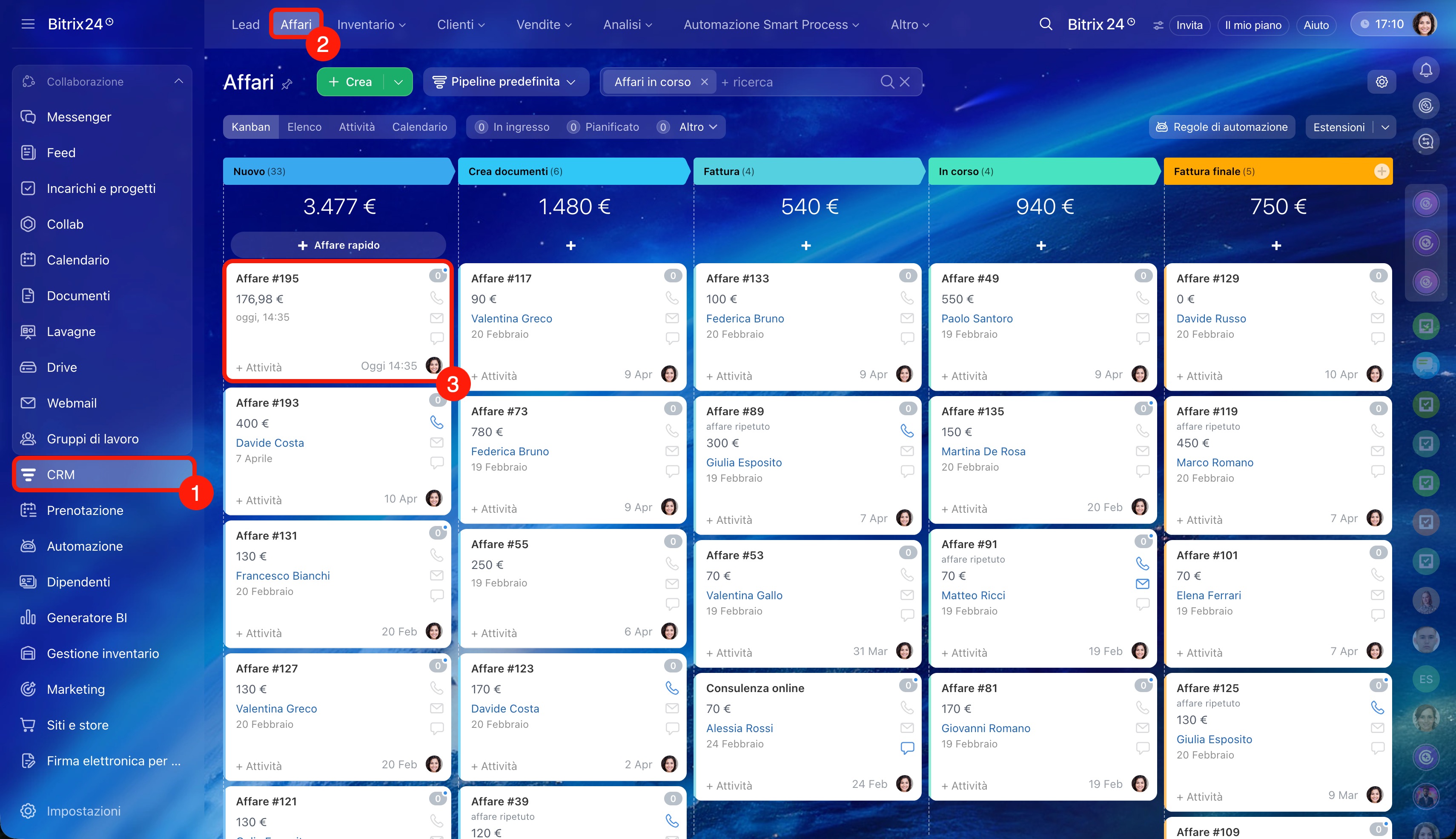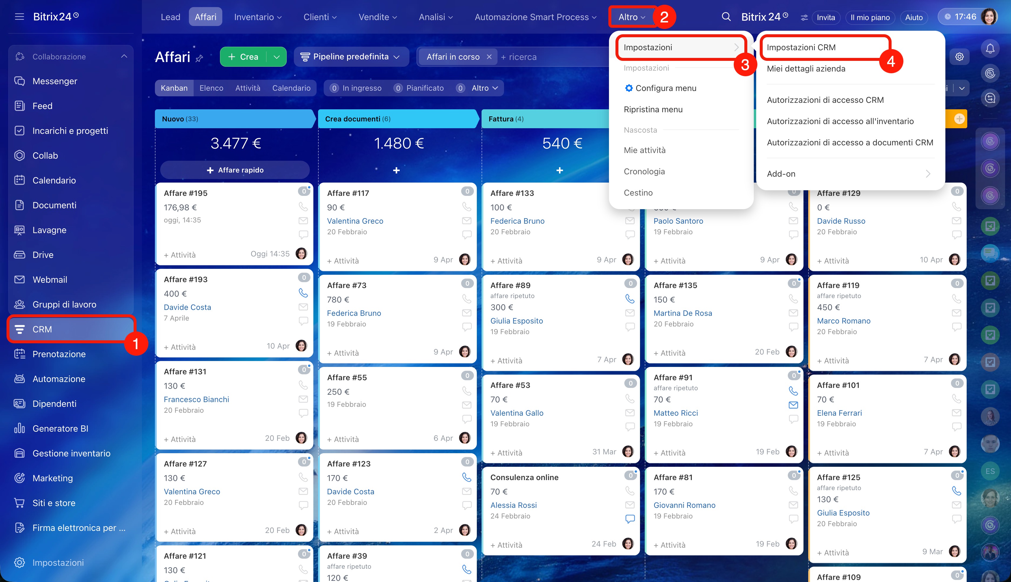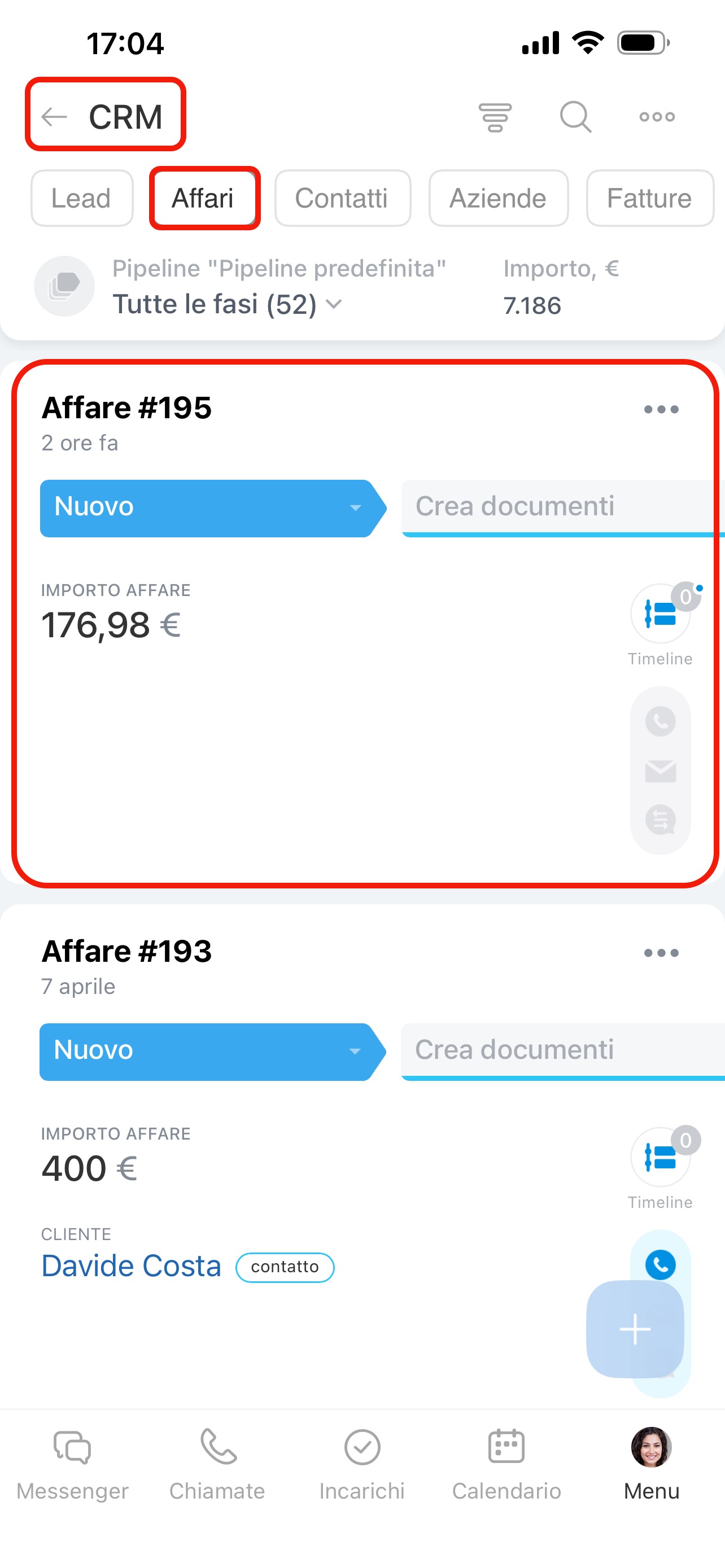 Vediamo il processo usando come esempio gli affari. Gli stessi passaggi sono adatti anche per gli altri elementi CRM.
