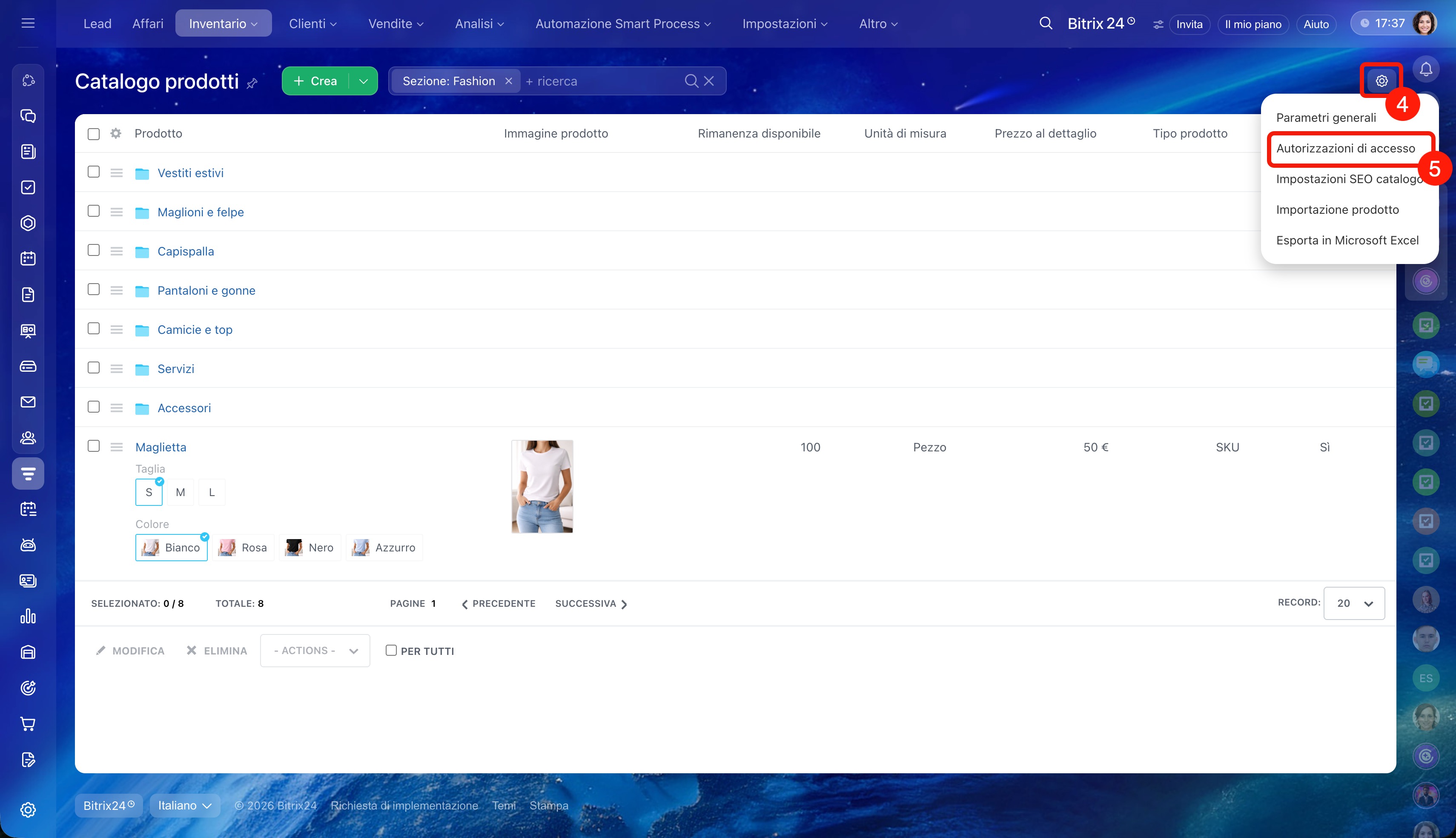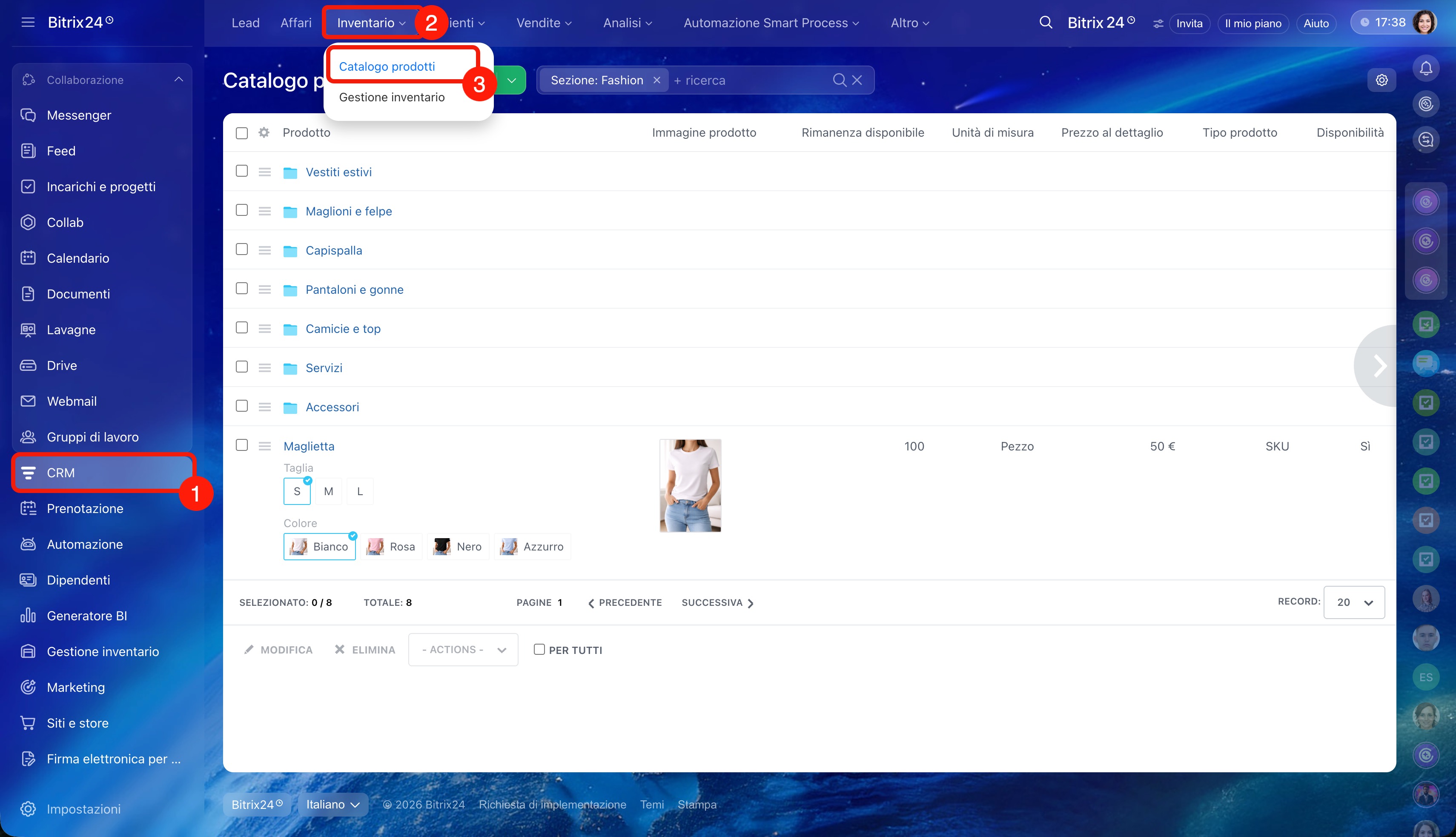 1–3. Vai in CRM > Inventario > Catalogo prodotti.