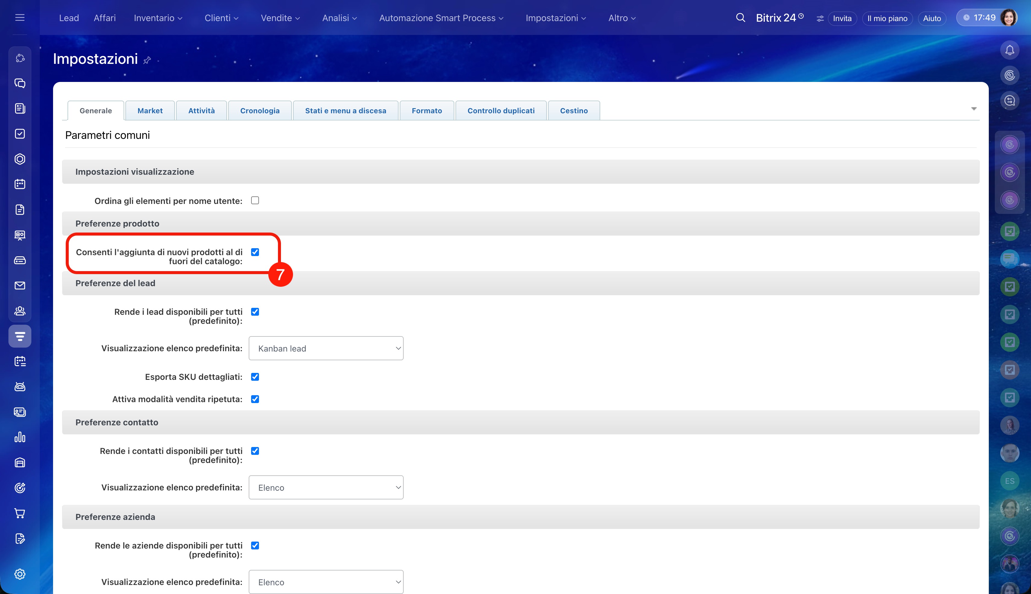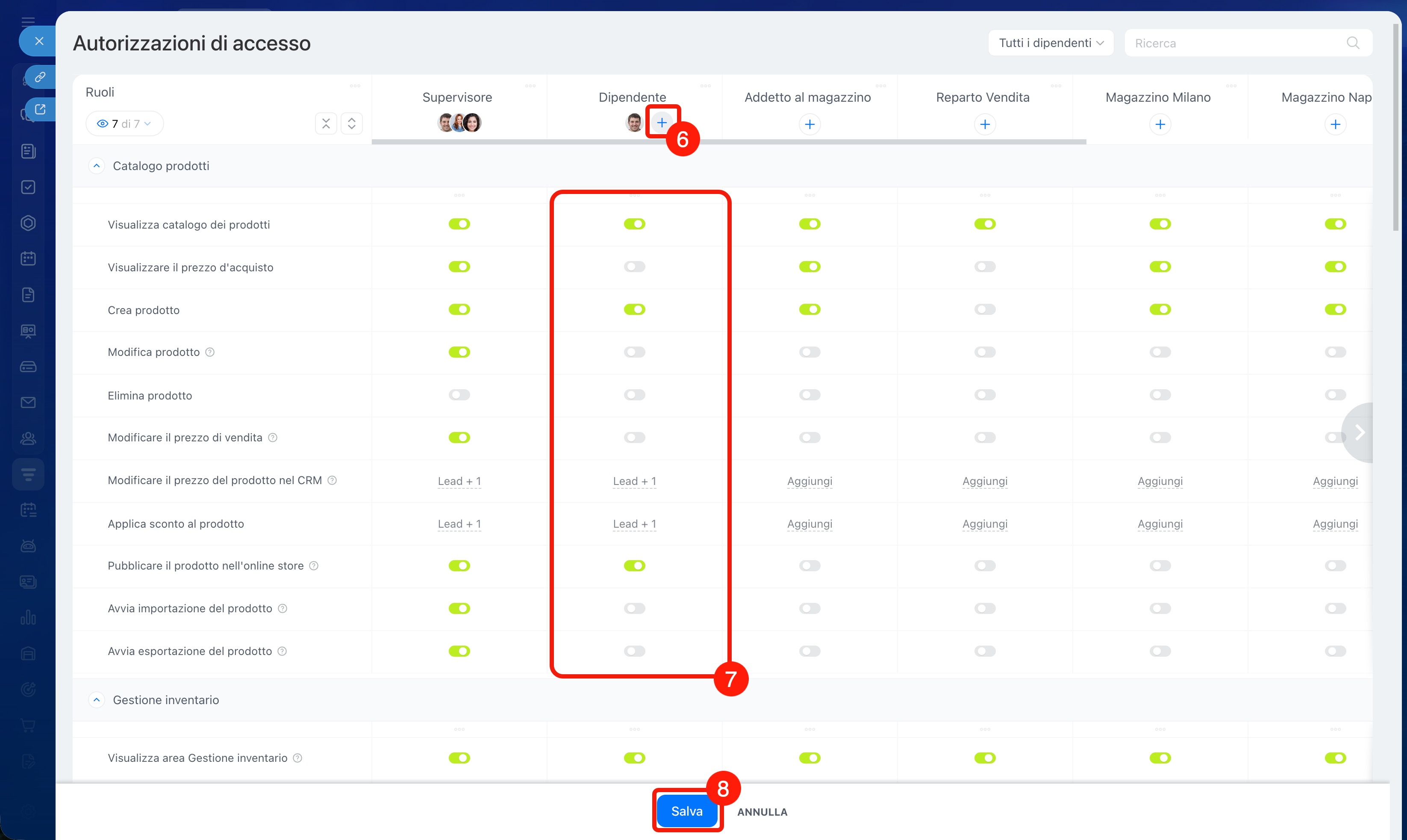 Per permettere ai dipendenti di aggiungere prodotti alla scheda CRM, configura per loro le autorizzazioni di accesso al catalogo.
