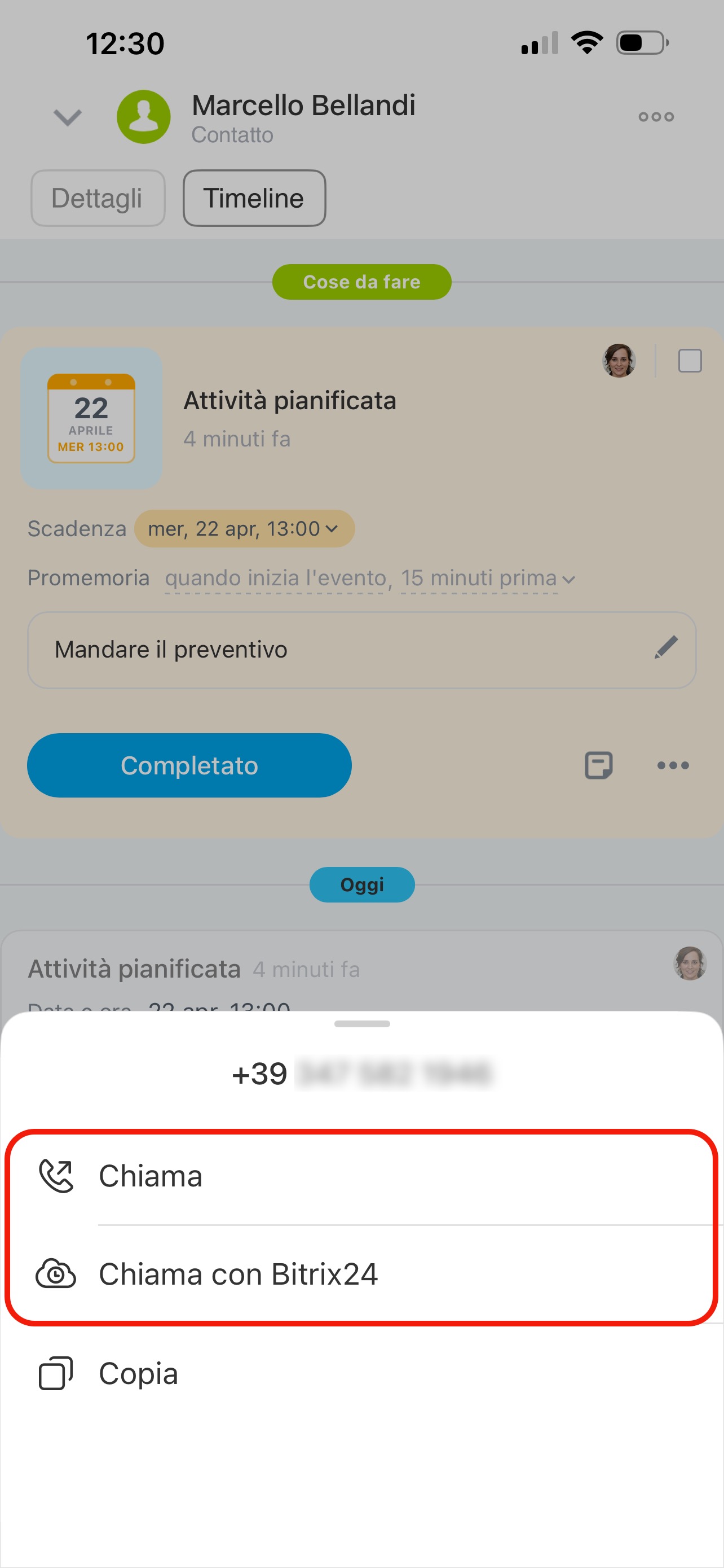 - Chiamare tramite Bitrix24: per effettuare la chiamata è necessario configurare la telefonia Bitrix24.