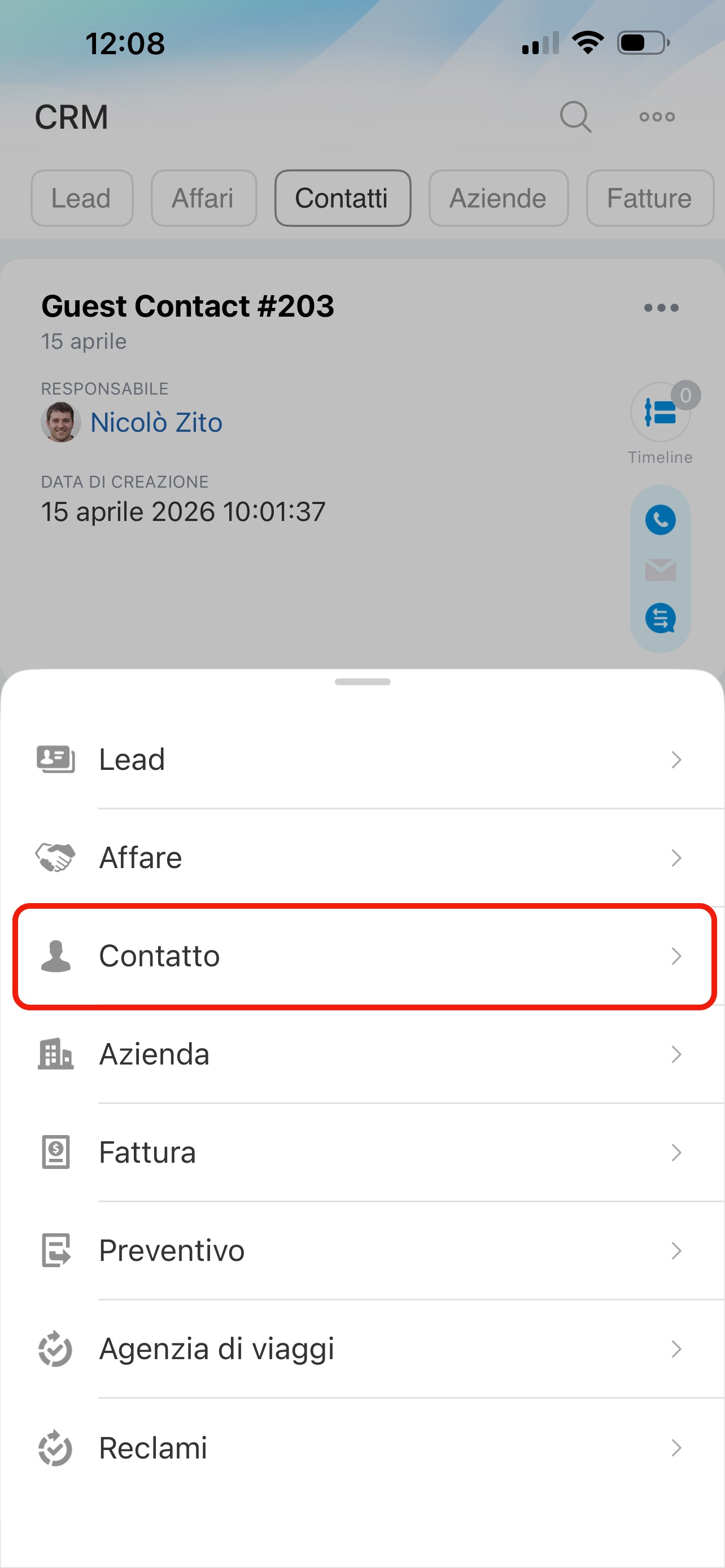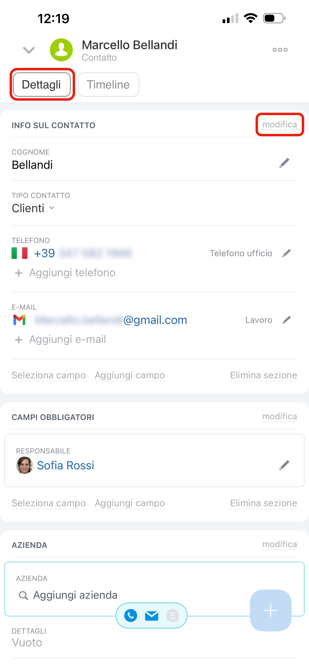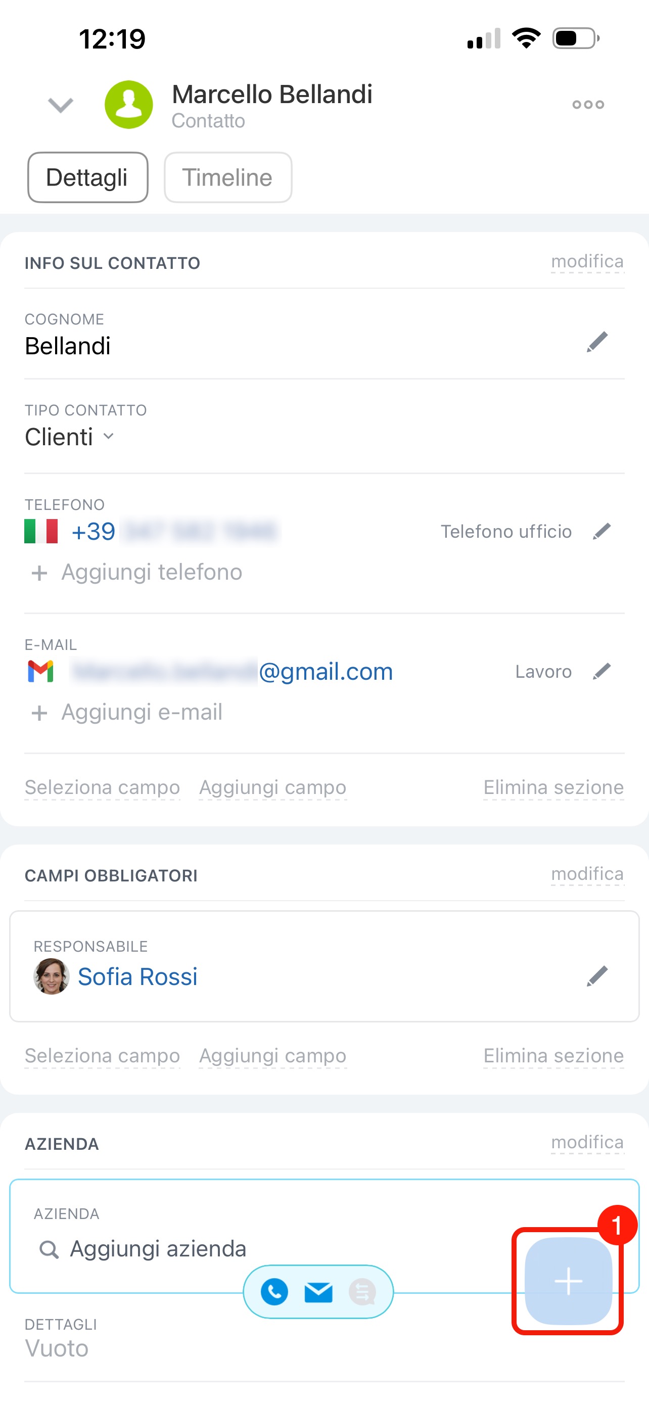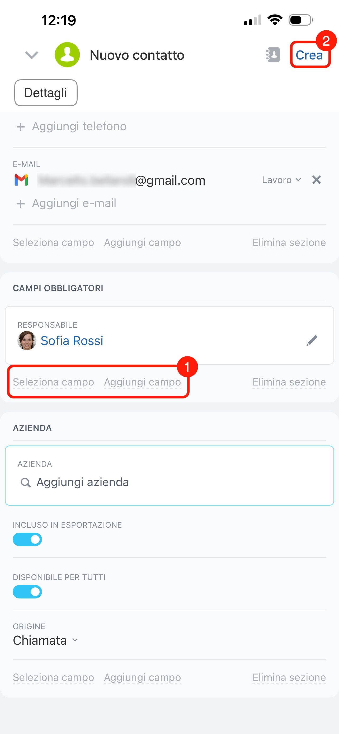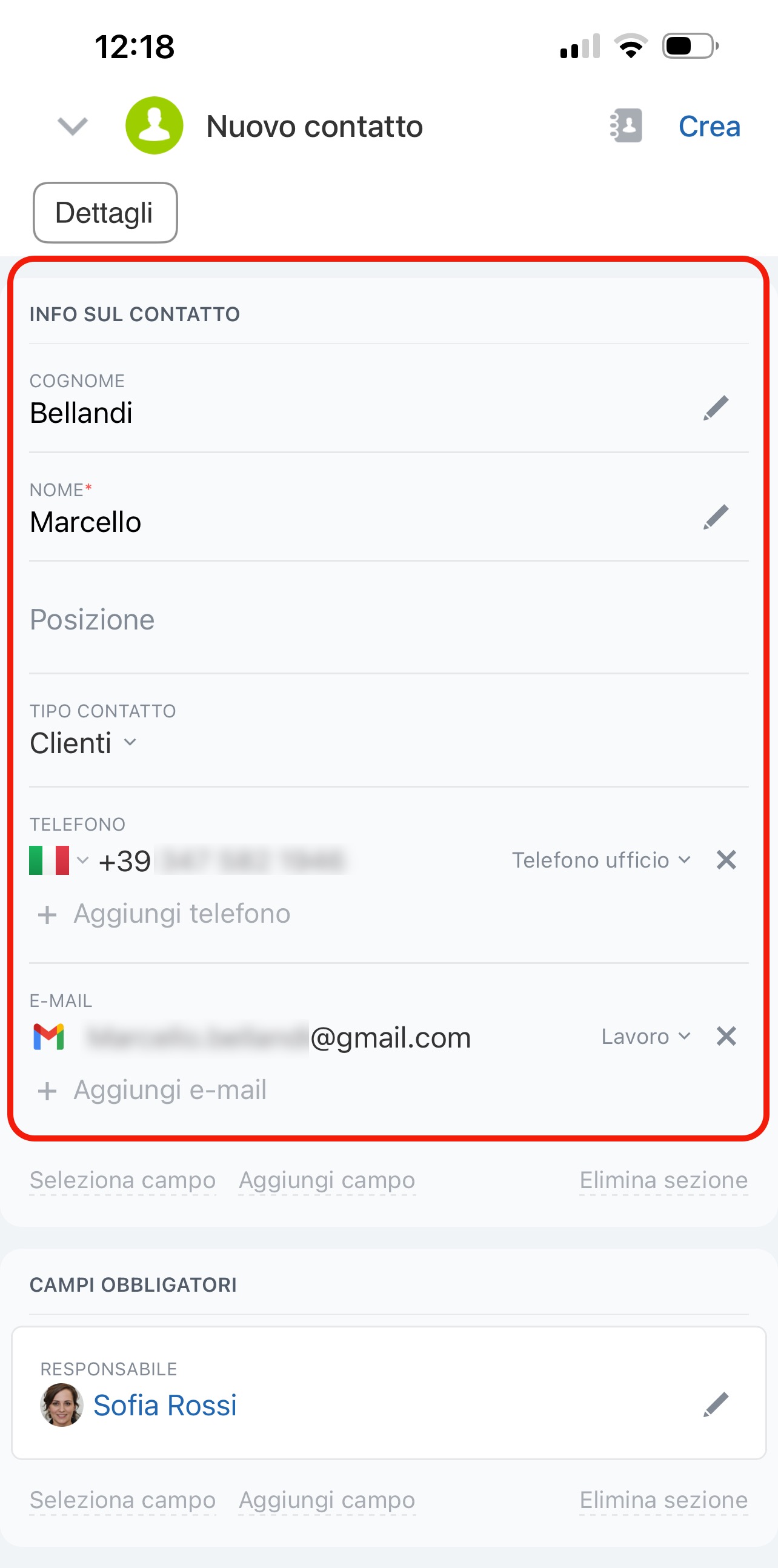 - Responsabile: scegli il dipendente che lavorerà con il contatto.