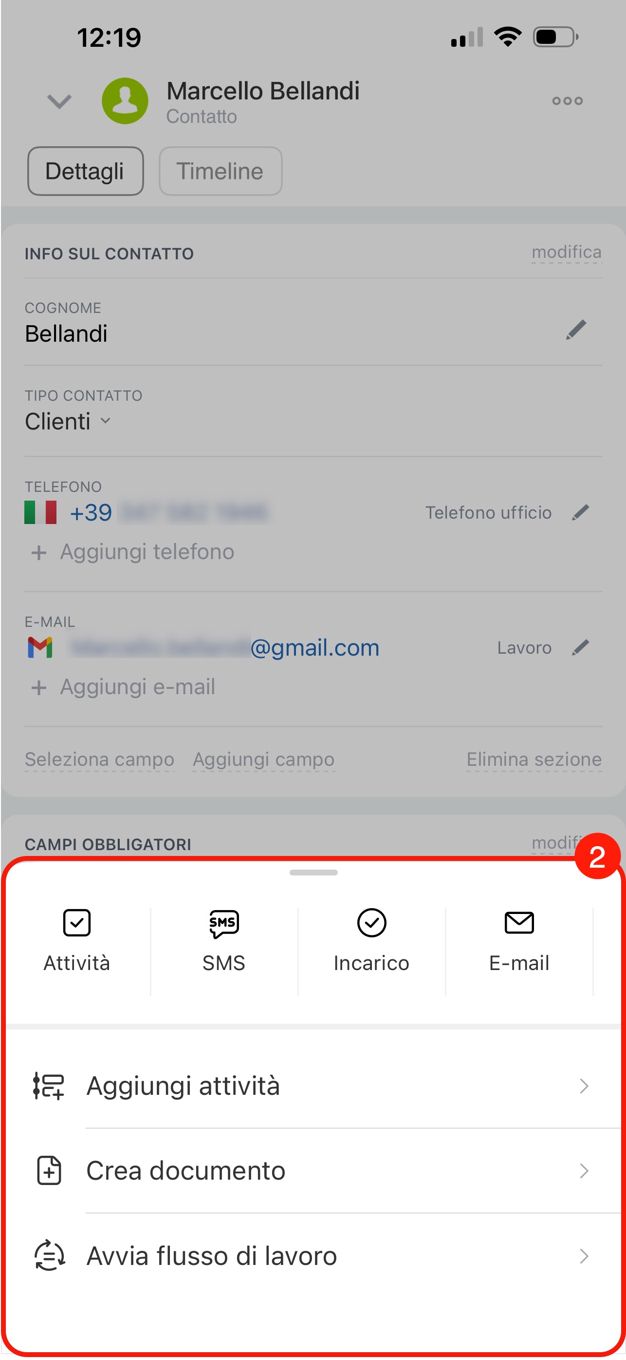 Nel CRM mobile è facile lavorare con i contatti anche fuori ufficio: chiamare, creare documenti, pianificare attività e monitorare la cronologia delle comunicazioni.
