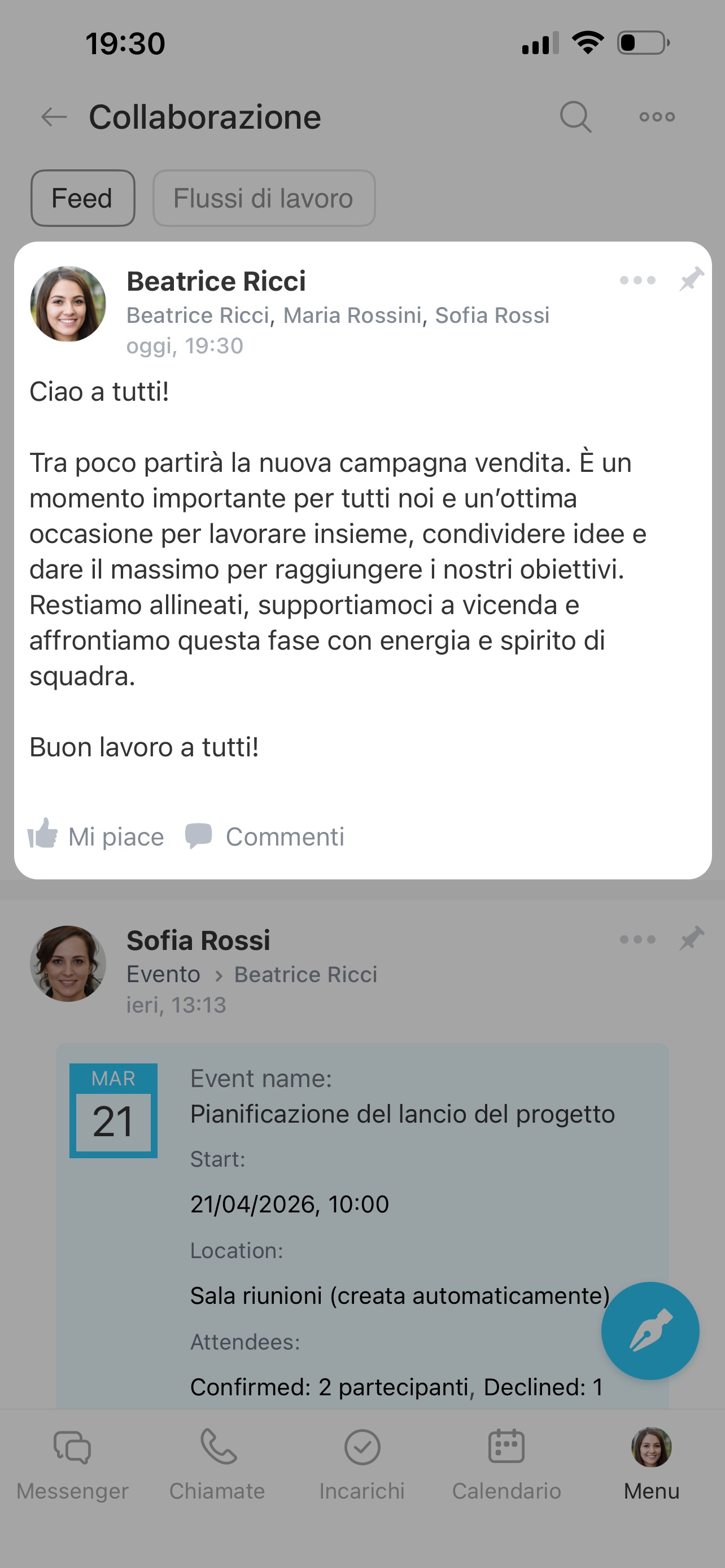 Il messaggio apparirà nel Feed e sarà visibile ai destinatari selezionati.