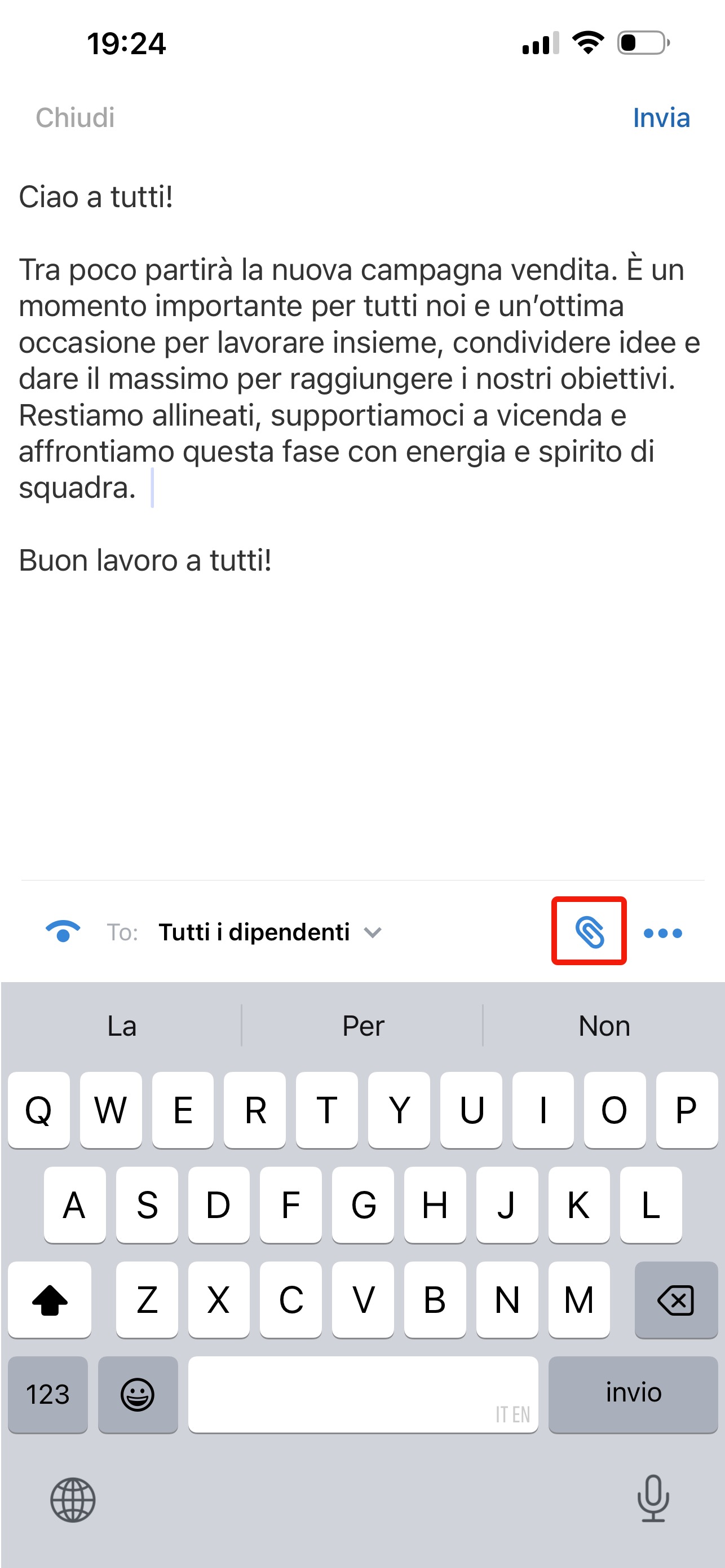 Fai clic sull’icona della graffetta per allegare file al messaggio.