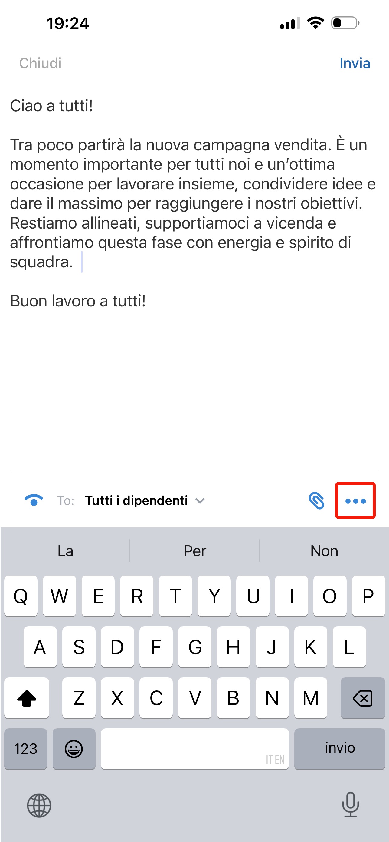 Fai clic sui tre puntini (...) nella barra inferiore per aggiungere altri elementi al messaggio: