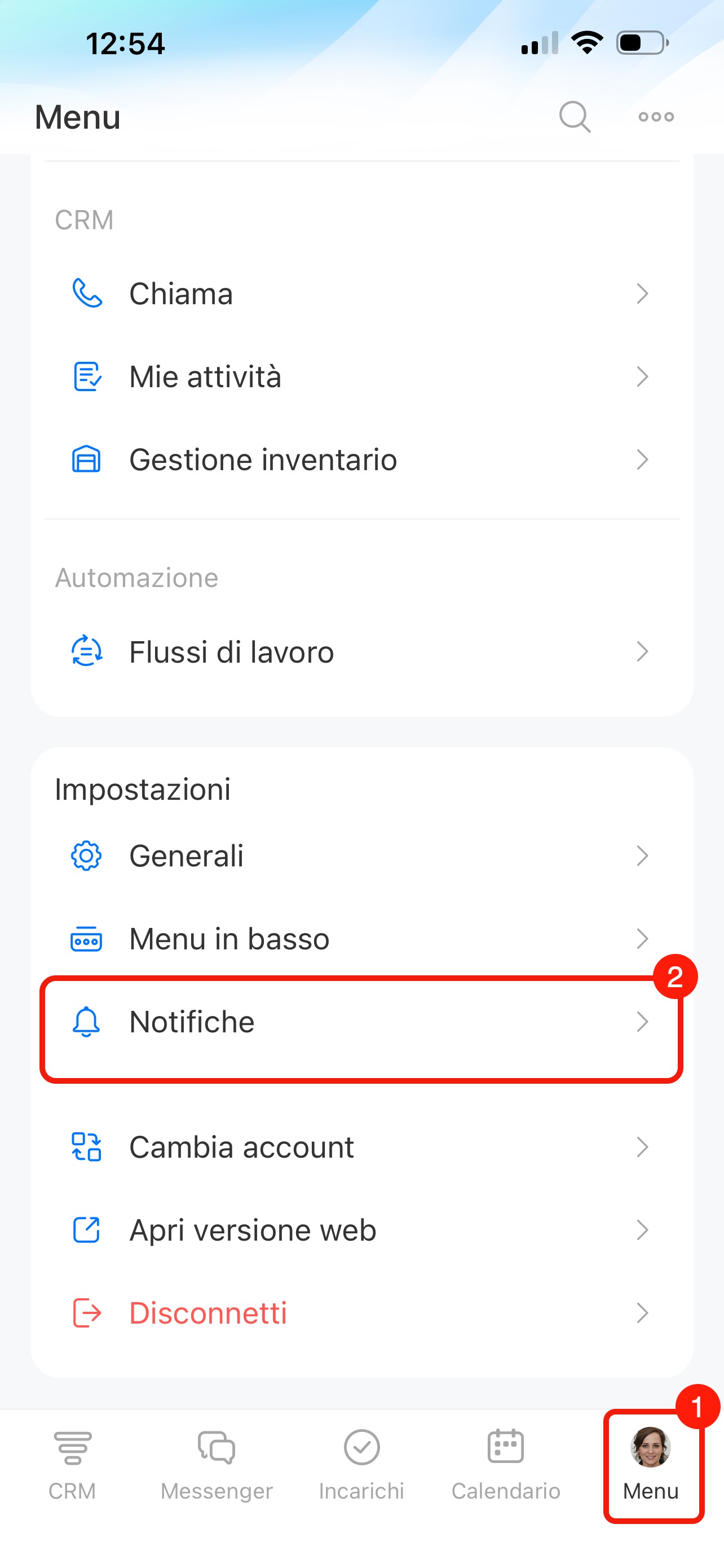 Vai alla scheda Menu in basso a destra. Nel blocco Impostazioni premi Notifiche.