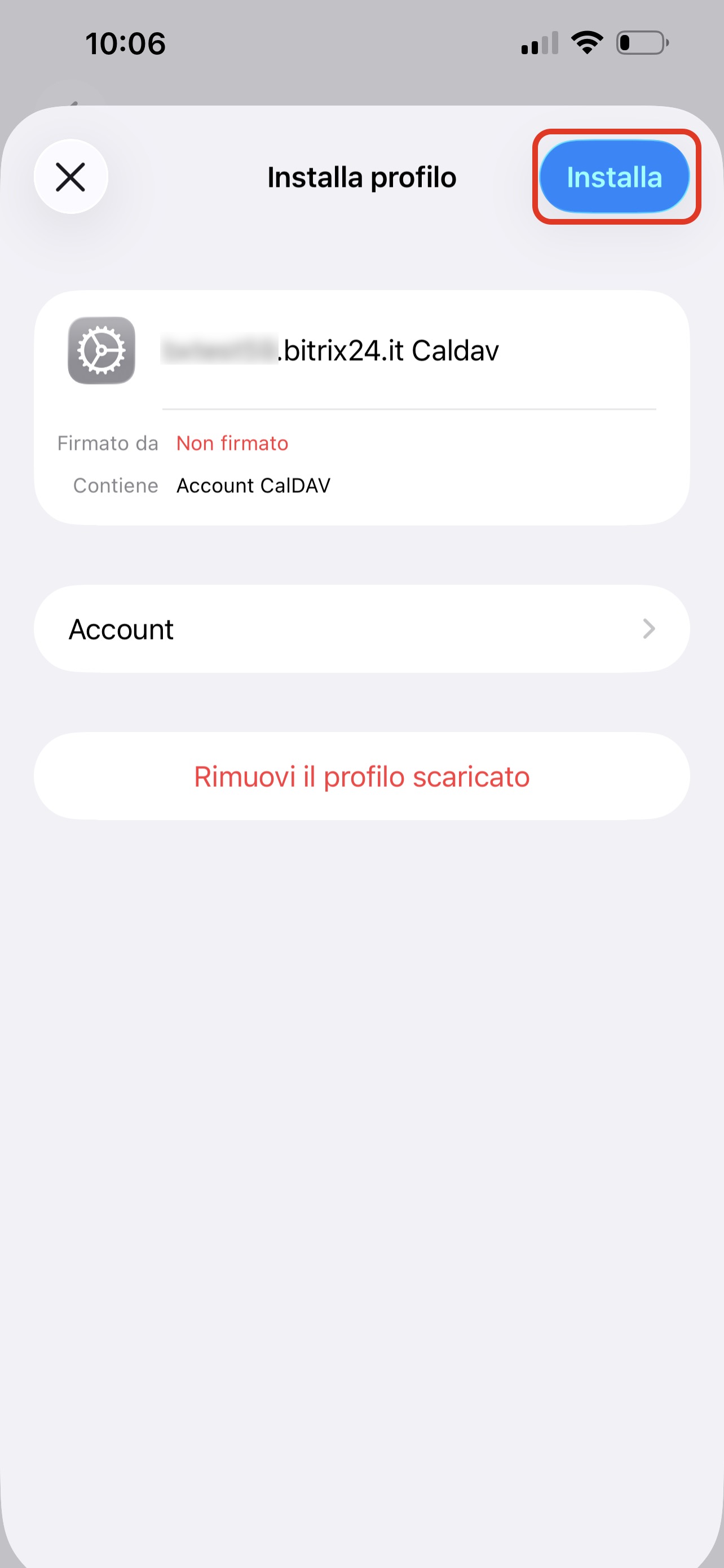 Premi Installa nell’angolo in alto a destra e segui le istruzioni sullo schermo. Dopo l’installazione del profilo, gli eventi di Bitrix24 appariranno nel calendario del telefono e viceversa.
