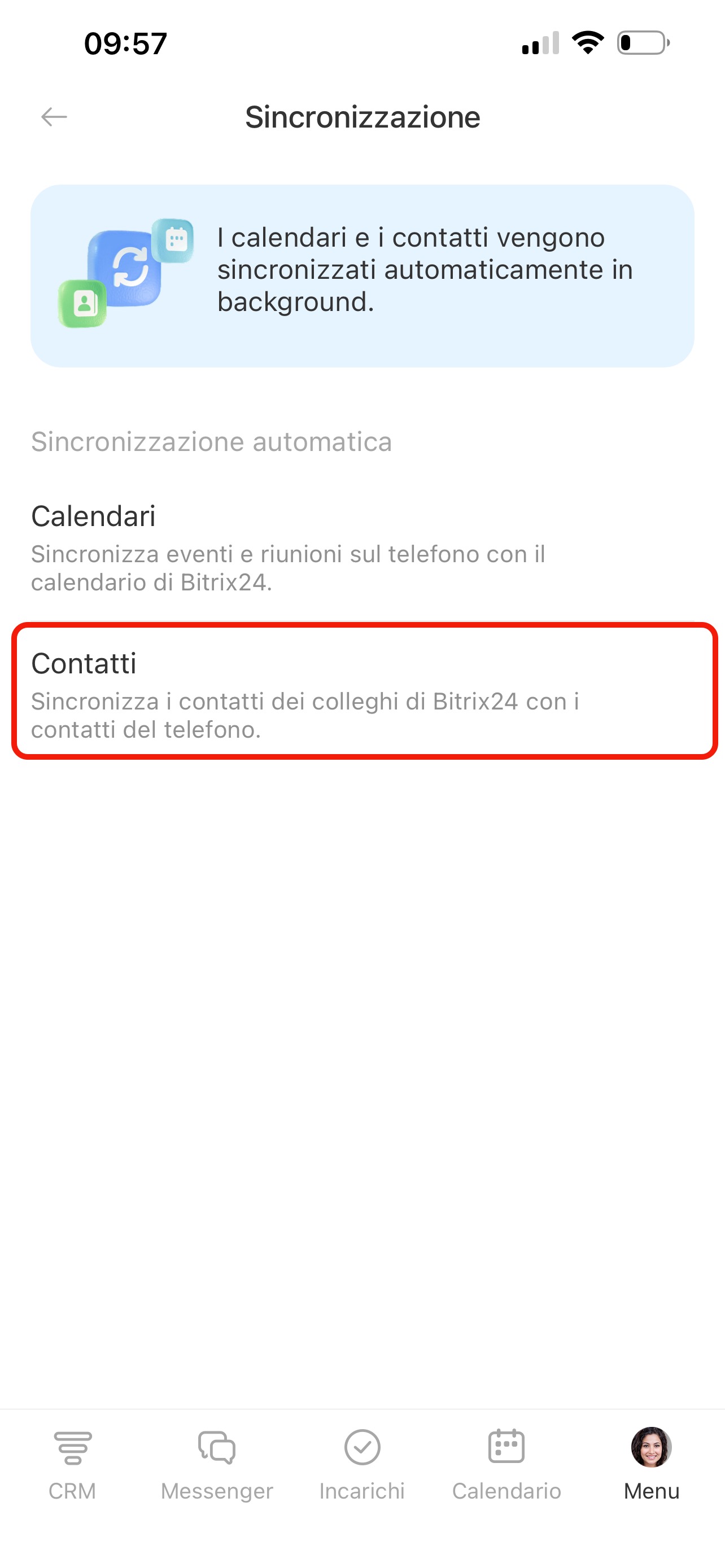 Dopo aver attivato le opzioni, la sincronizzazione verrà eseguita automaticamente in background: non sono necessarie azioni aggiuntive.