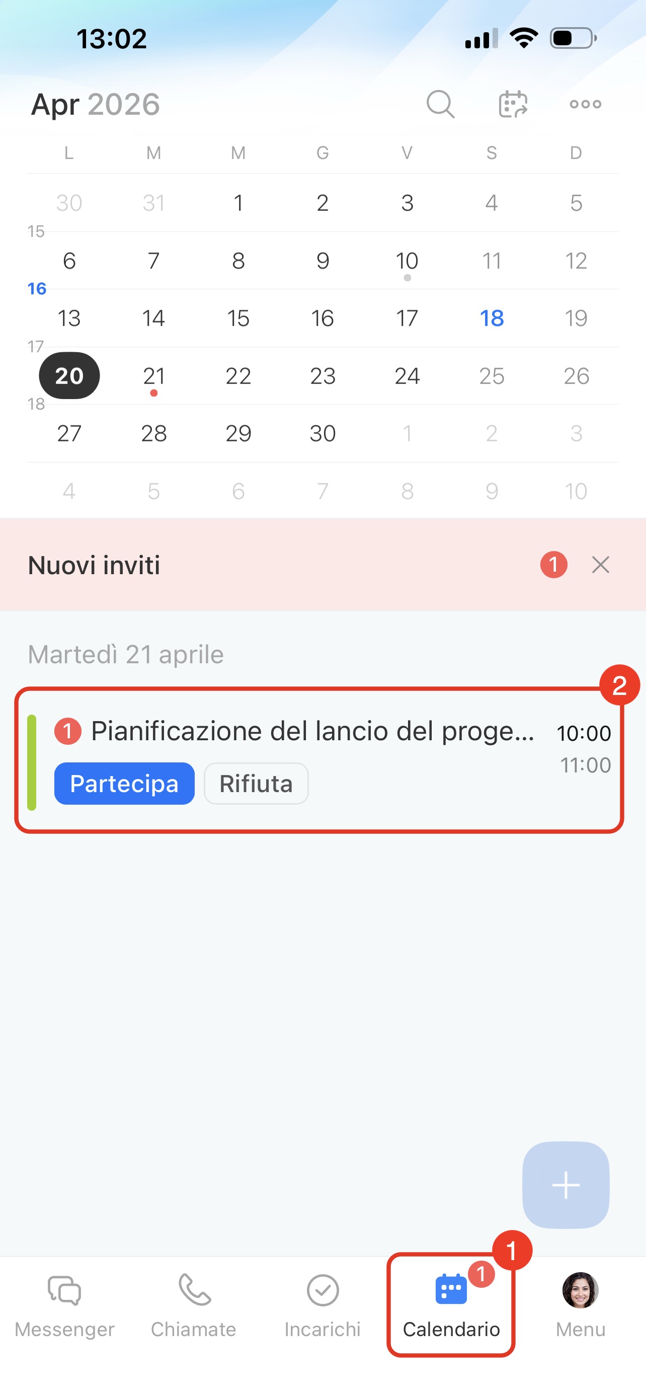 Trova il messaggio sull’evento: contiene nome, data e luogo. Premi Parteciperò oppure Rifiuta invito.