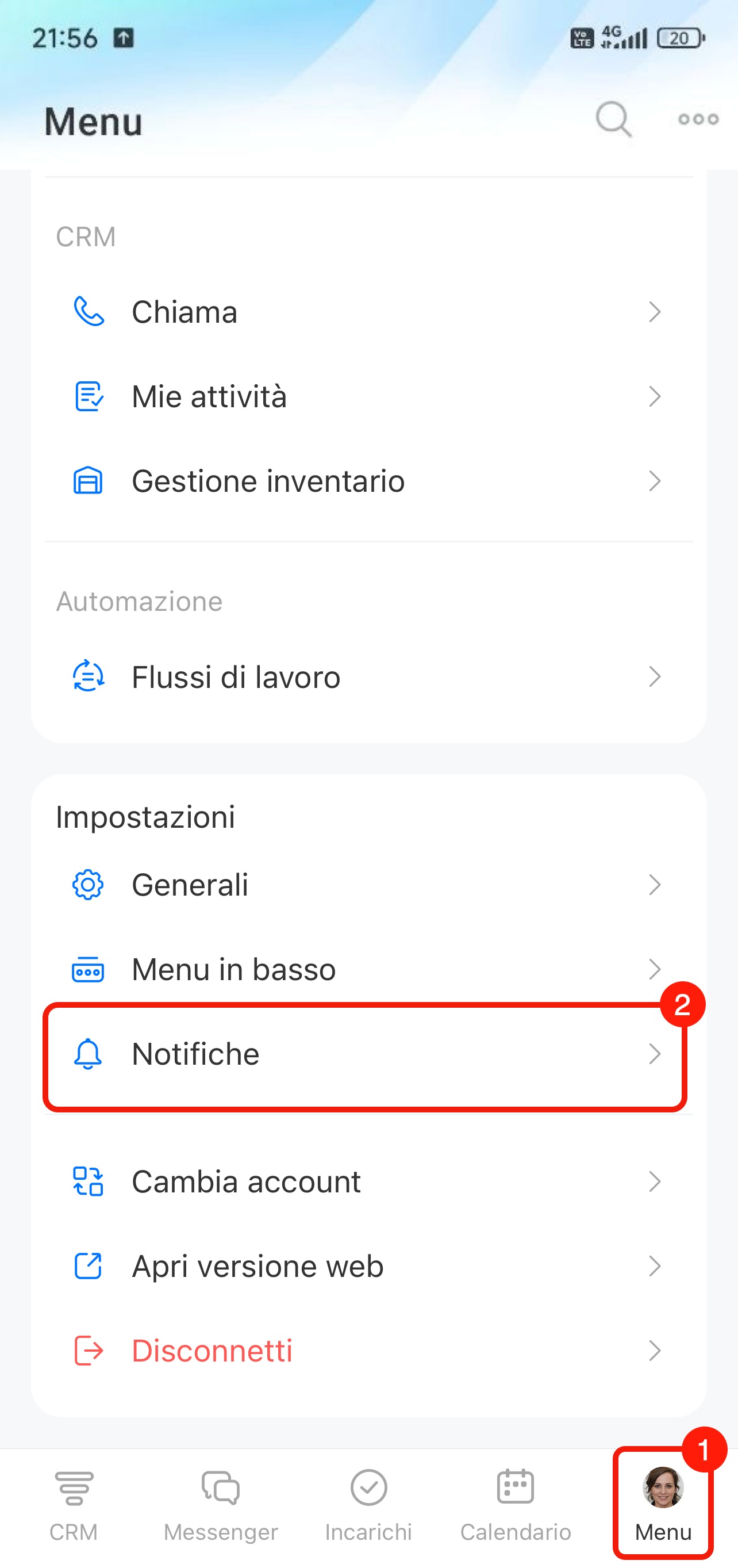Vai nella scheda Menu in basso a destra e premi Notifiche.