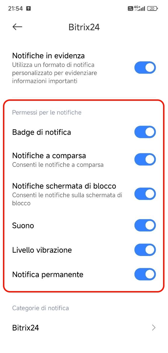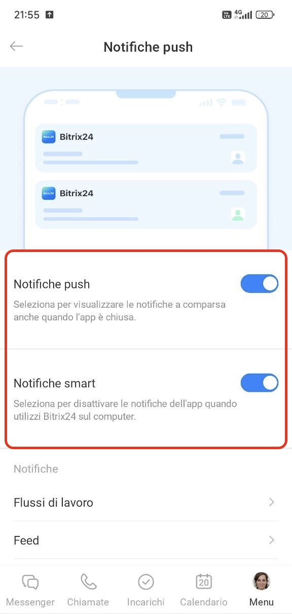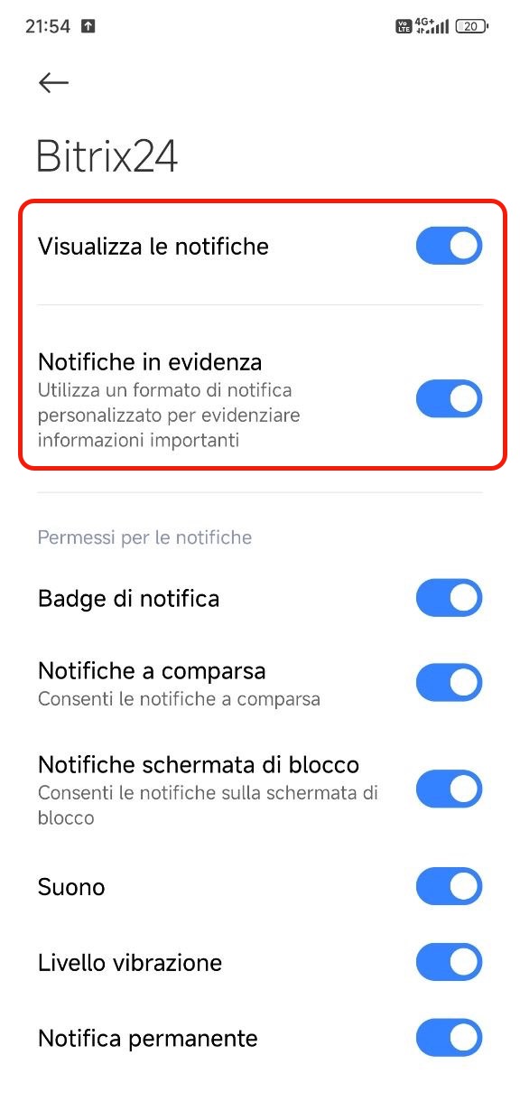 Senza questa impostazione le notifiche push non arriveranno, anche se sono attive nell’app Bitrix24.