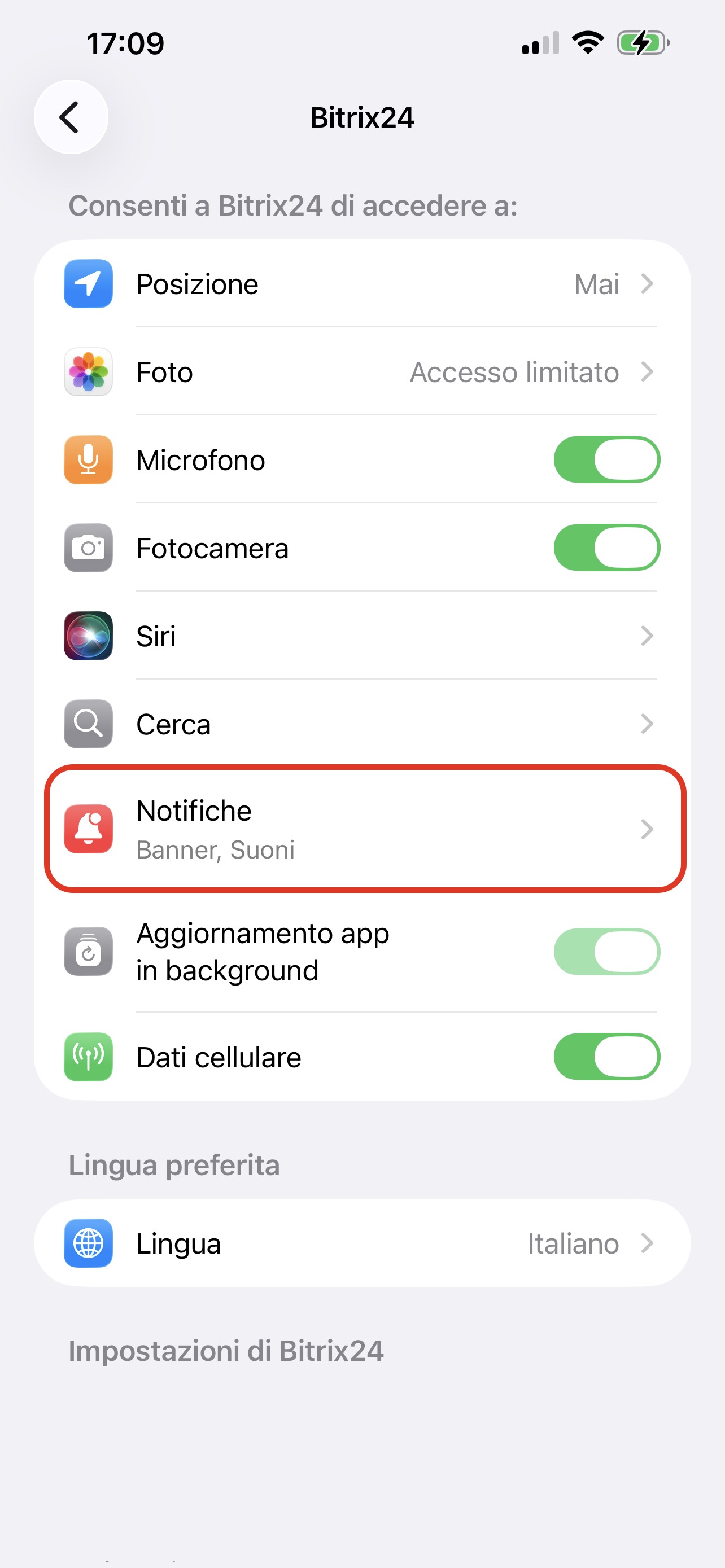 Apri Impostazioni su iPhone e cerca Bitrix24. Seleziona l’app dall’elenco.