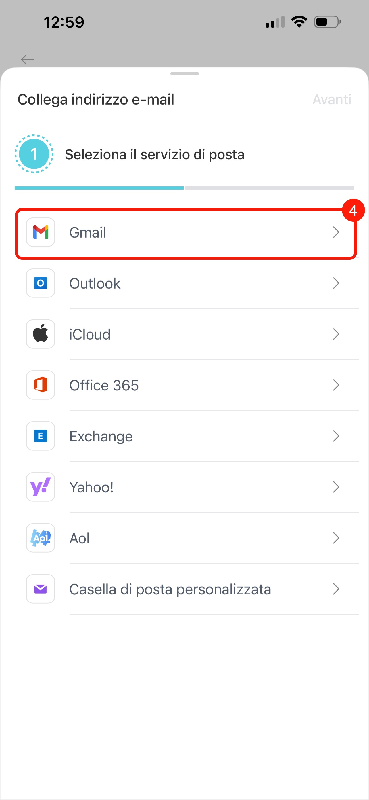 4. Scegli il servizio e-mail che vuoi collegare. Ad esempio, Gmail o iCloud.
