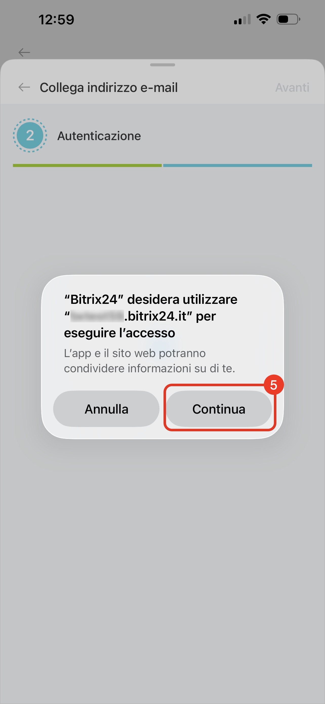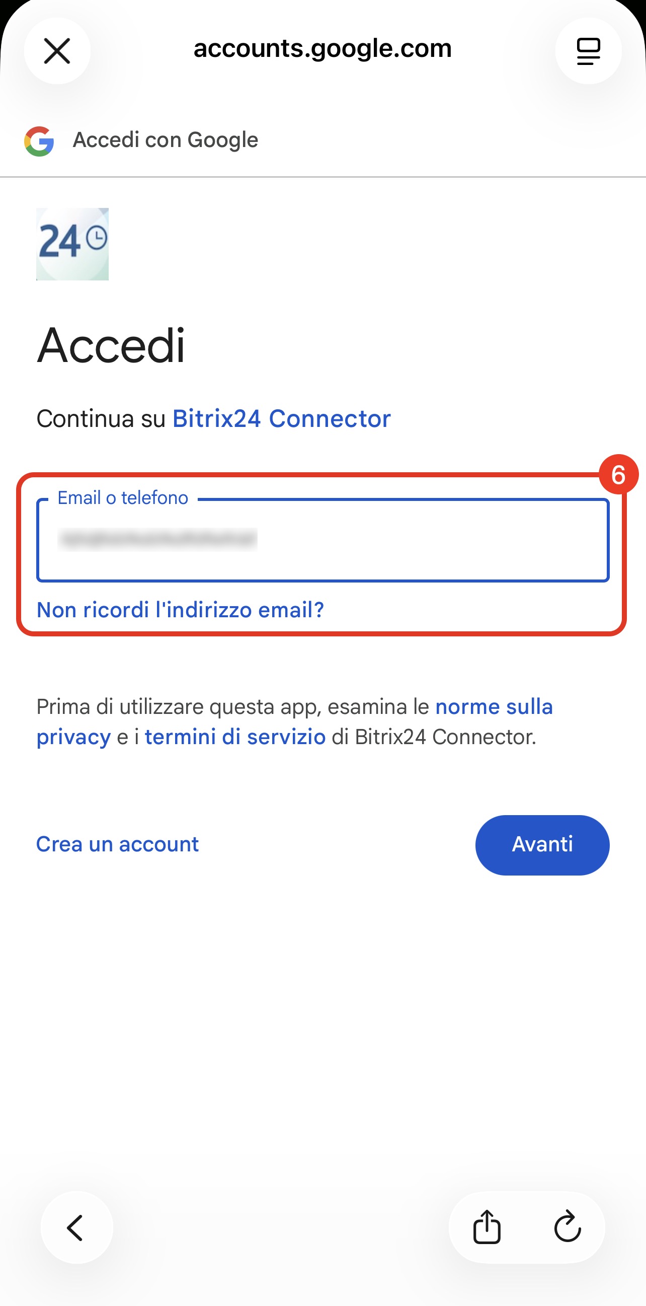 5. Tocca Continua: si aprirà la finestra di autenticazione del servizio selezionato.