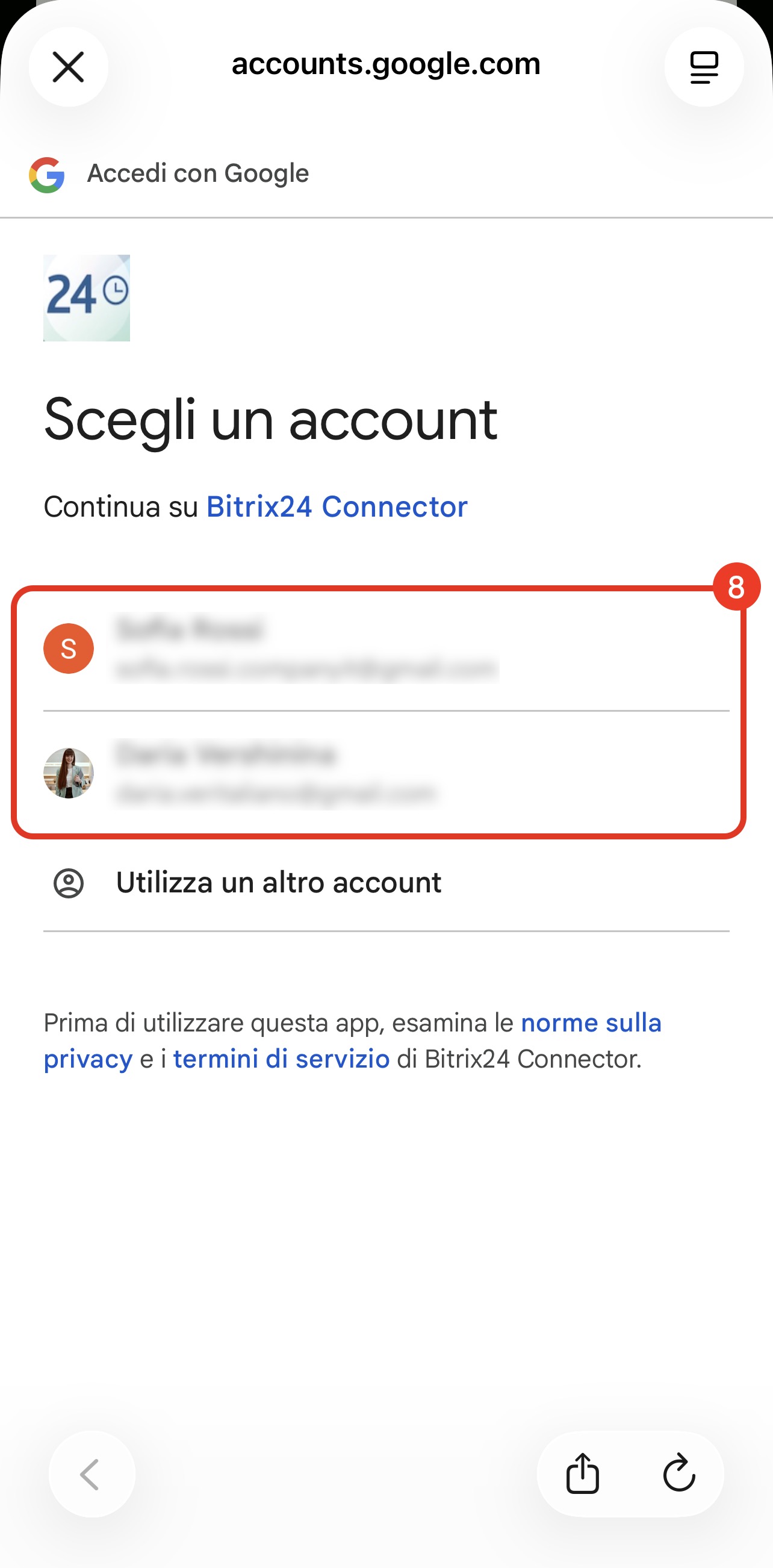 8. Se hai più account, seleziona quello necessario.