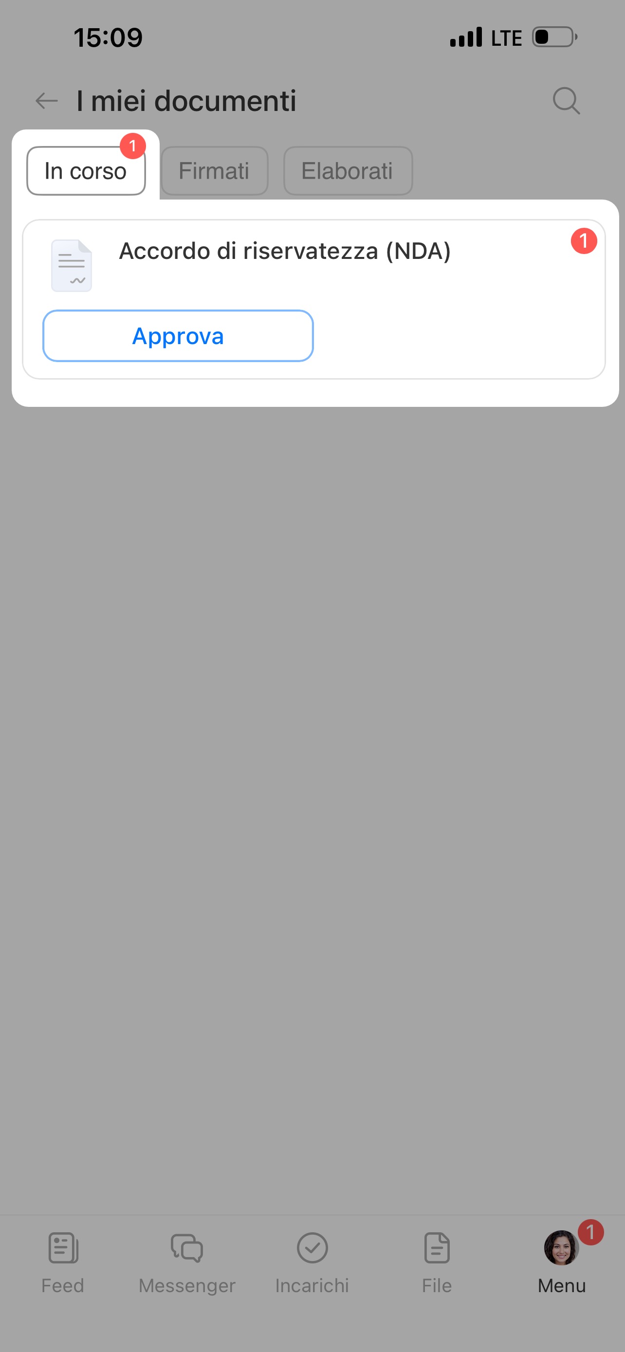 In corso. Documenti che richiedono la tua azione: firmare, approvare o compilare.