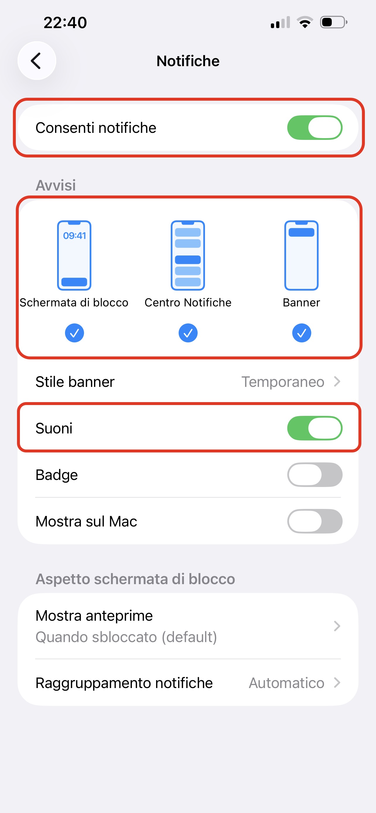 - Consenti notifiche,