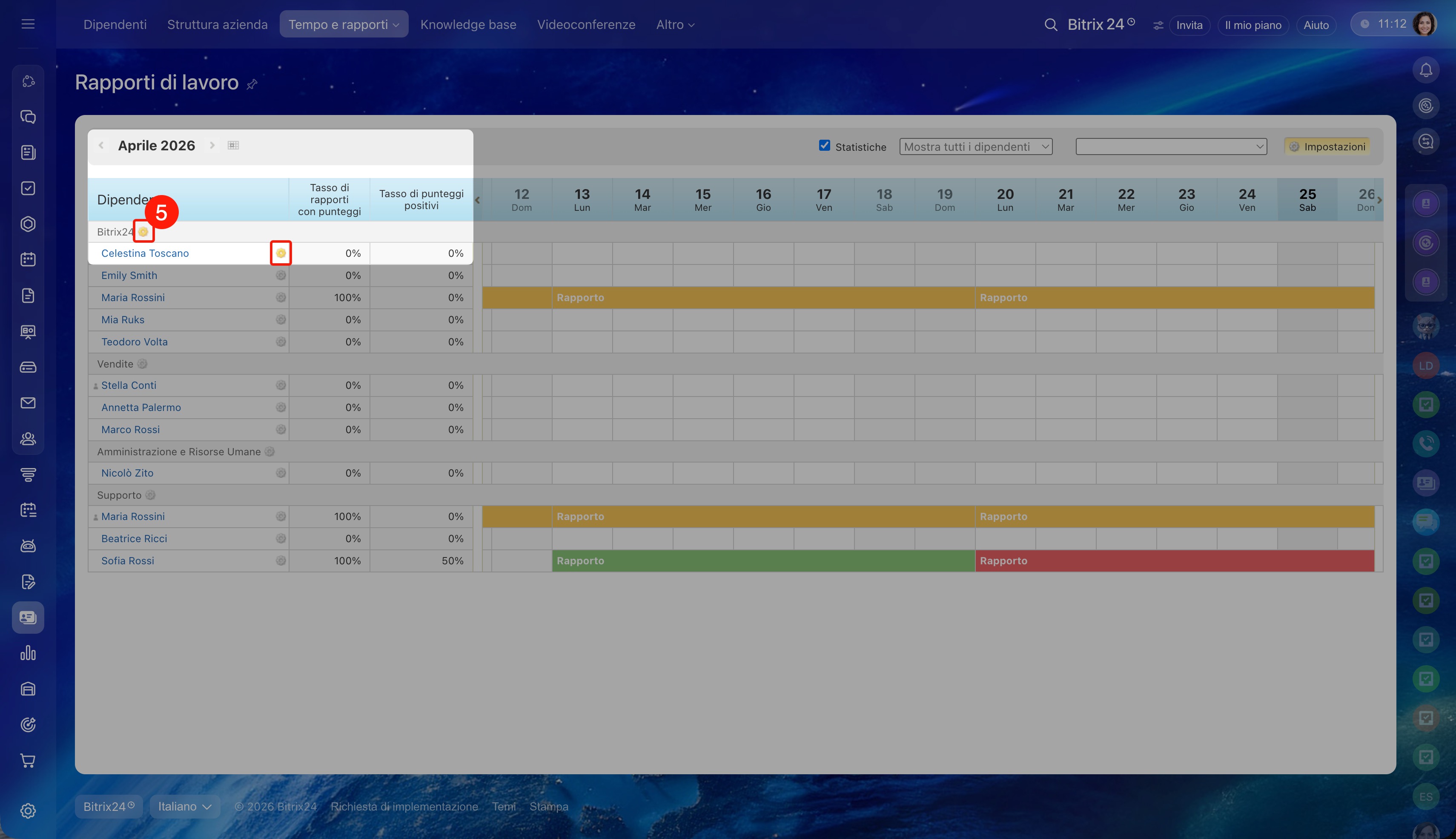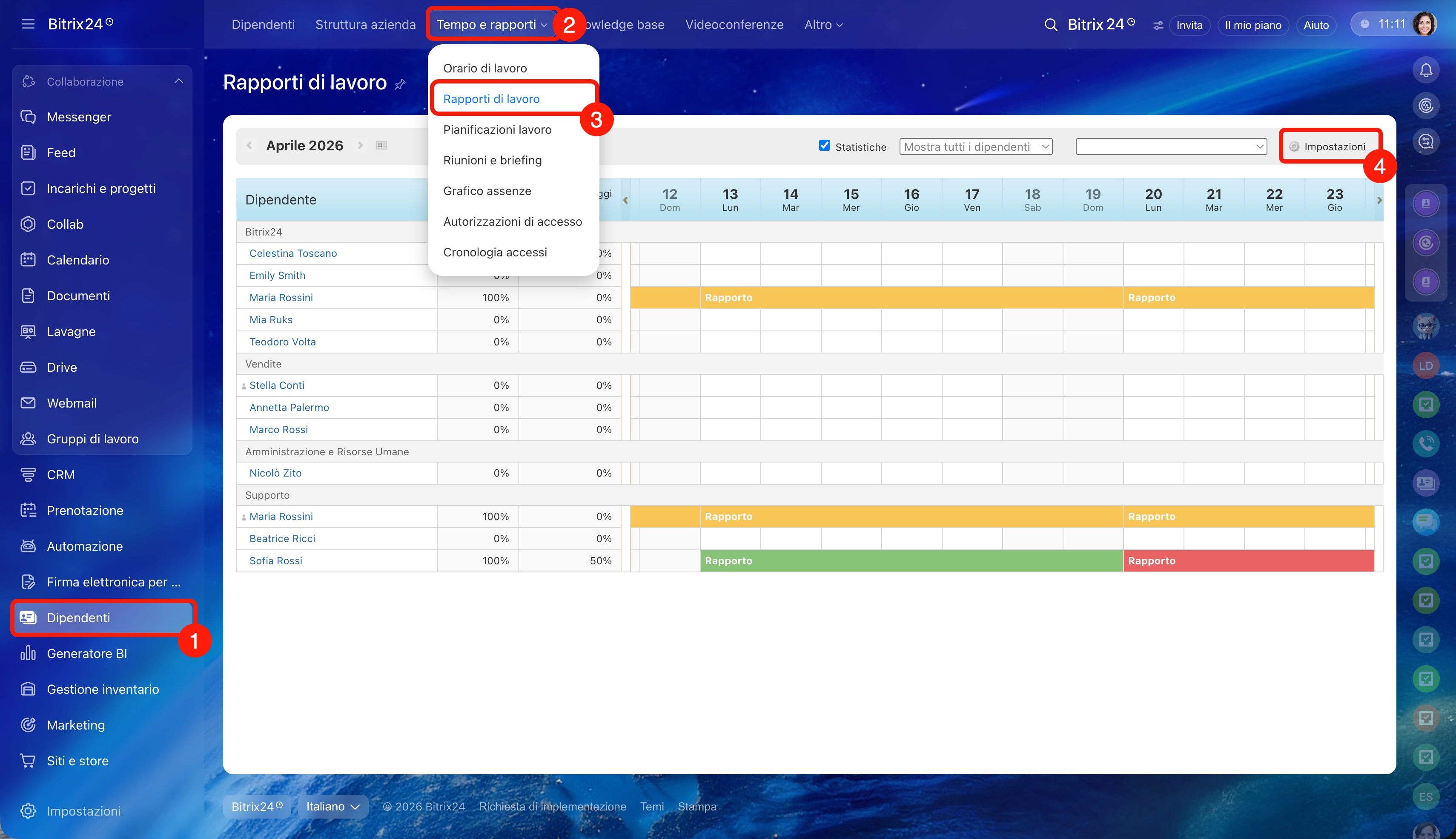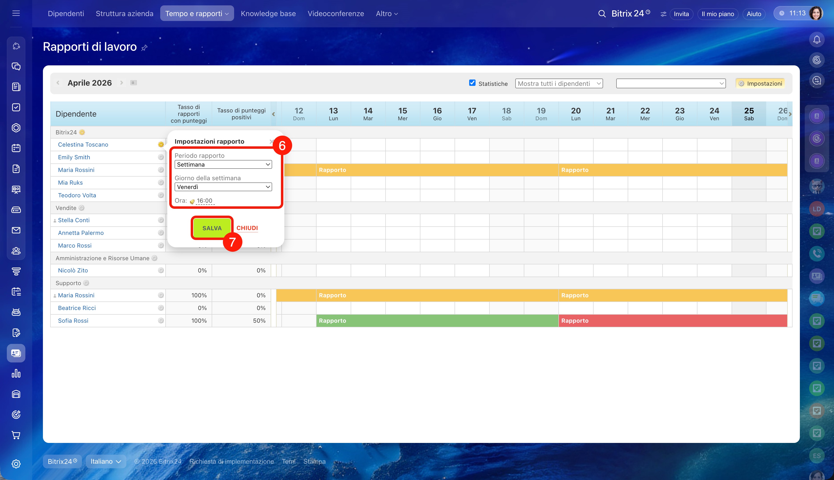 - Puoi configurare un rapporto per tutto il reparto o per un dipendente specifico.